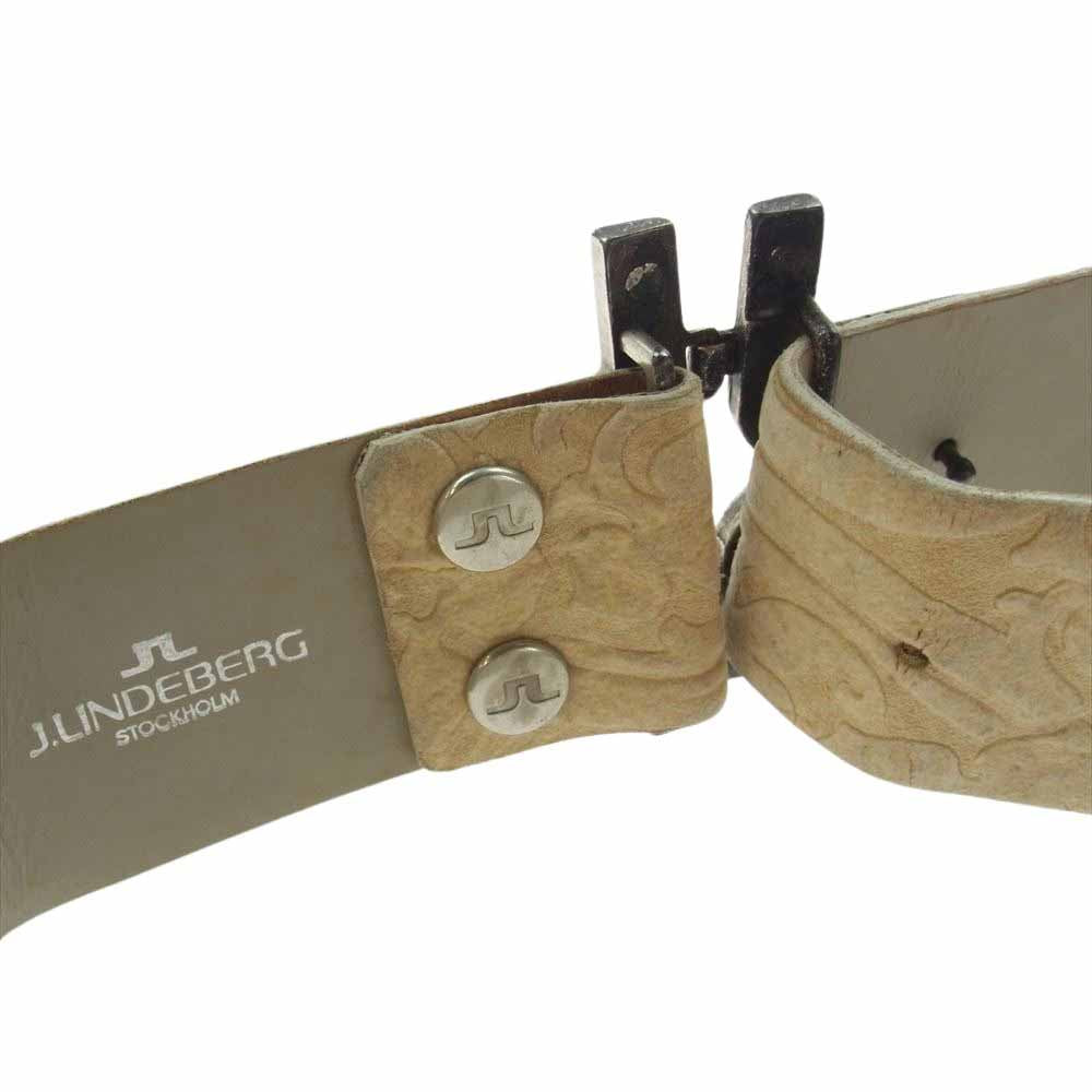 J.LINDEBERG ジェイリンドバーグ NR32L9028900 ビッグ バックル 型押し レザー ベルト ベージュ系【中古】