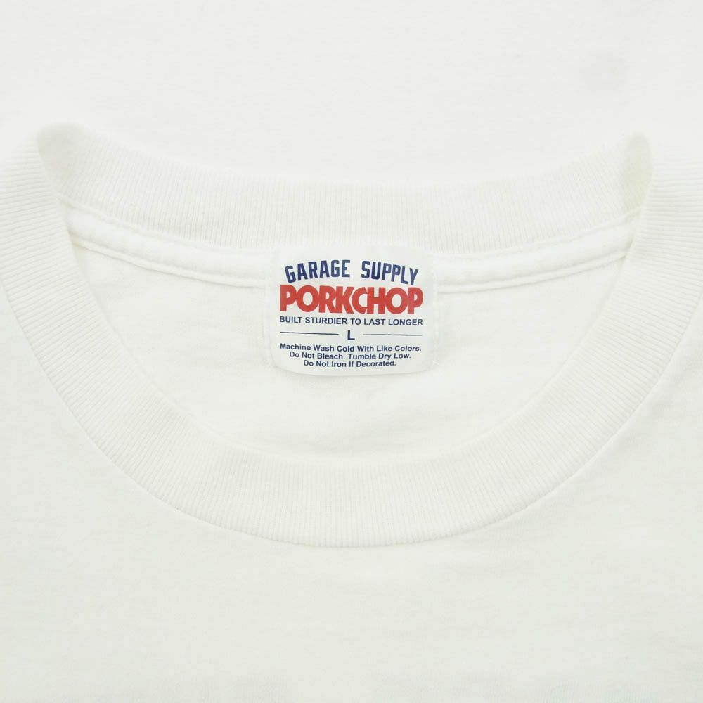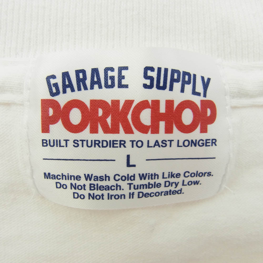 PORKCHOP ポークチョップ GARAGE SUPPLY ガレージサプライ ロゴプリント 半袖 Tシャツ ホワイト系 L【中古】