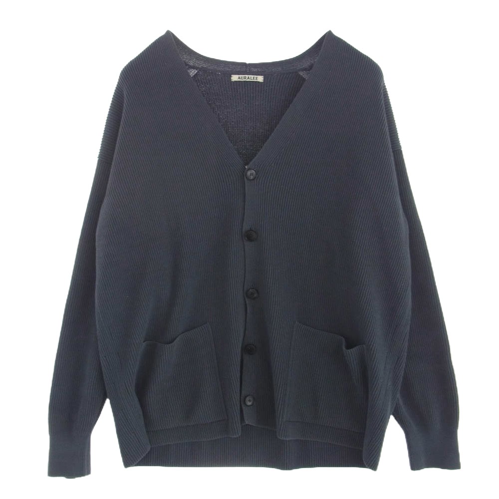 AURALEE オーラリー 22SS A22SC01TR SUPER HARD TWIST RIB KNIT BIG CARDIGAN ハード ツイスト ビッグシルエット ニット カーディガン ブルー系 ネイビー系【中古】
