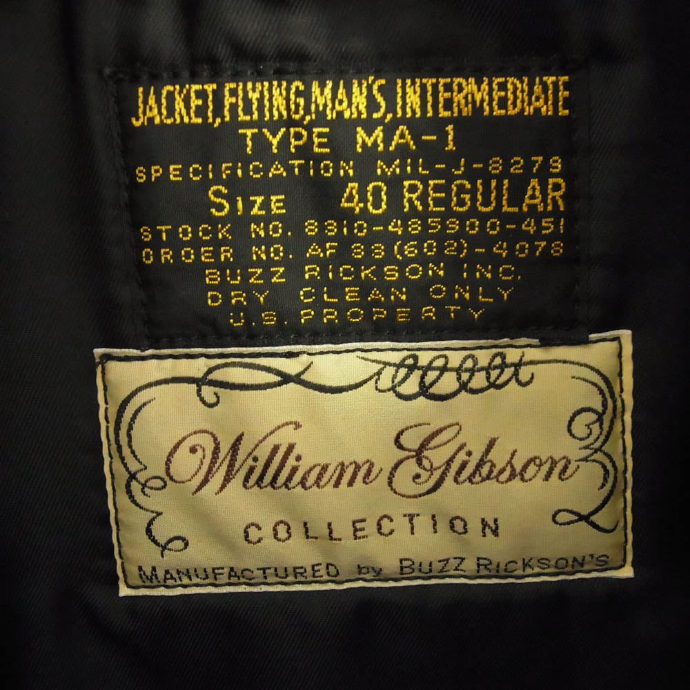 | 商品名 | BR14964 WILLIAM GIBSON COLLECTION Type BLACK MA-1 SLENDER ウィリアムギブソン MA-1 フライト ミリタリー ジャケット |
