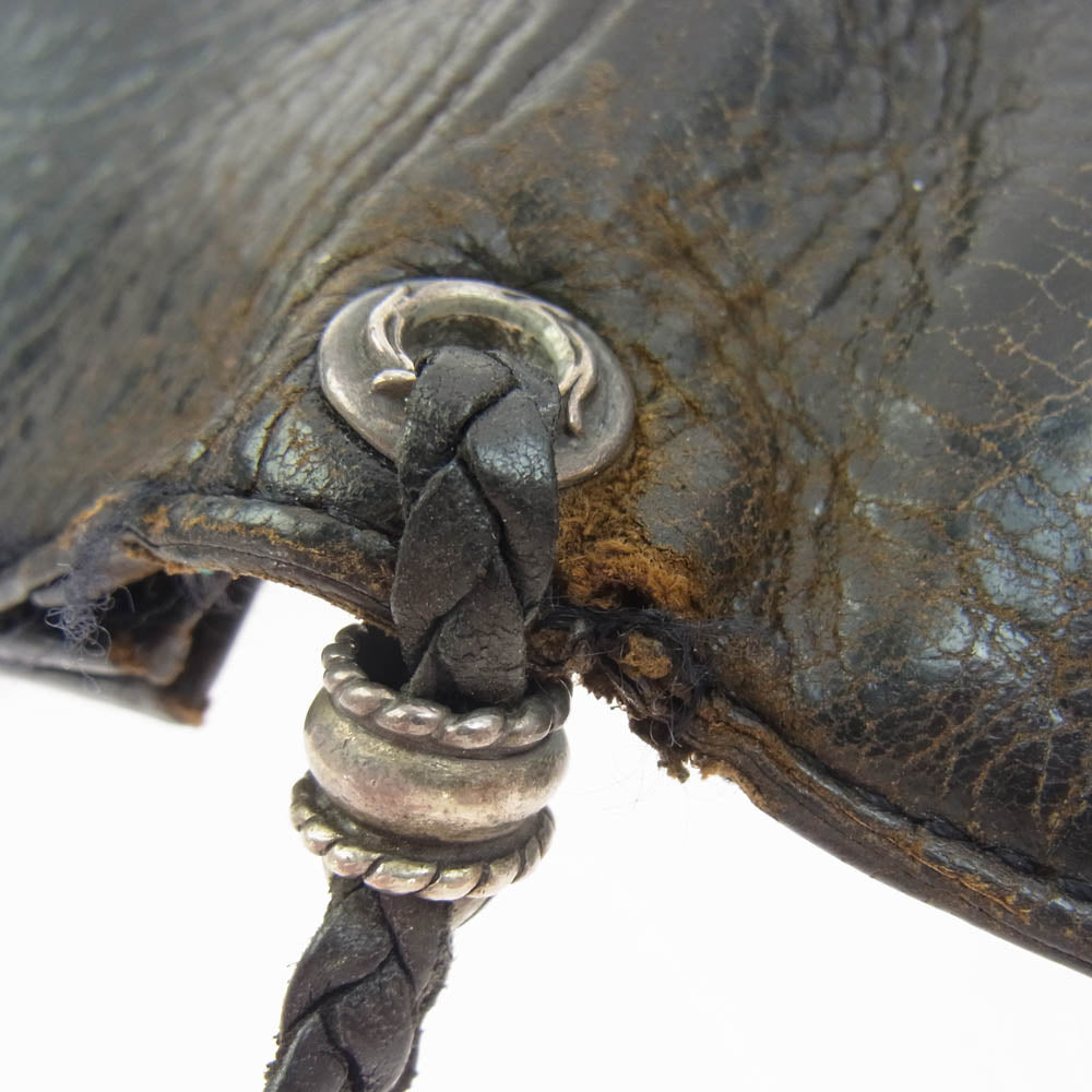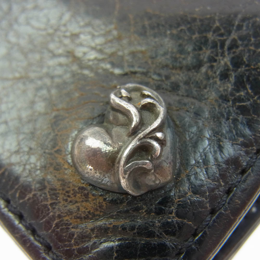 CHROME HEARTS クロムハーツ(原本無) 2ZIP 2ジップ ハートボールボタン レザー ウォレット 財布 ブラック系【中古】