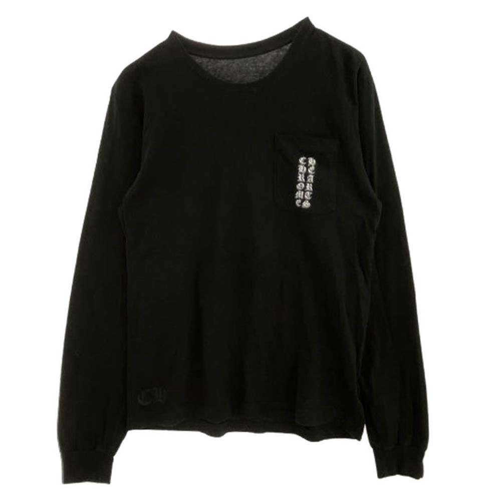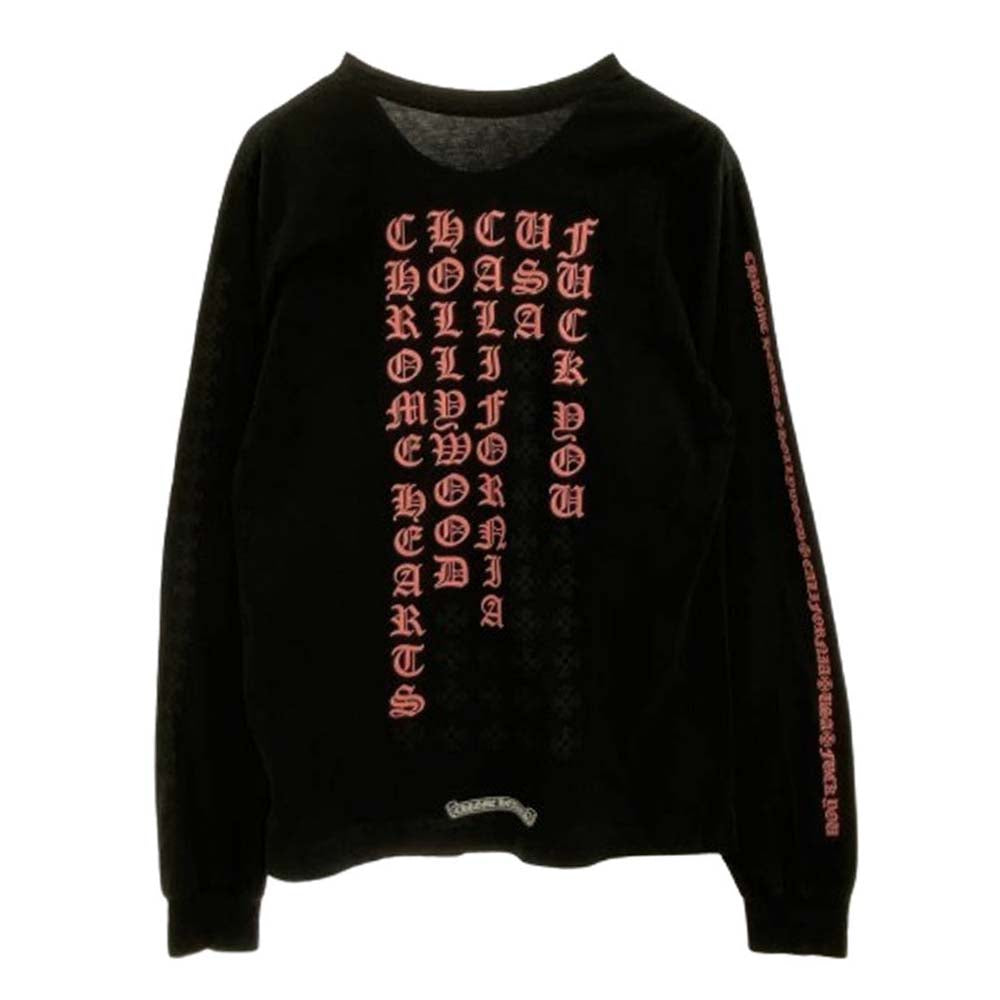 CHROME HEARTS クロムハーツ(原本無) FUCK YOU USA STRIPE LOGO L/S TEE 英字プリント ファックユー ネオン ストライプロゴ クルーネック 長袖 Tシャツ ブラック系 M【中古】