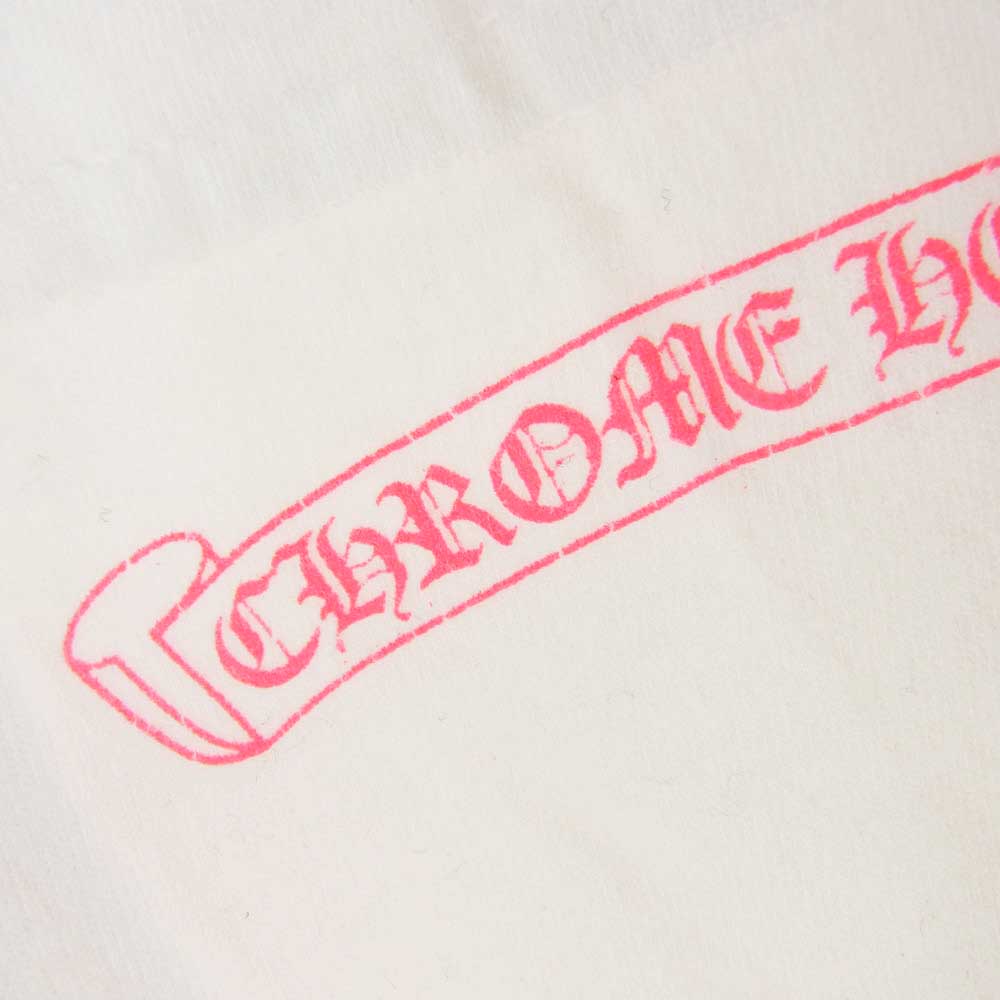 フロントにクロムハーツのホースシューロゴと袖にはフローラルプリント。バックには今にも話し出しそうなMatty Boyのインパクトのあるマウスプリント。