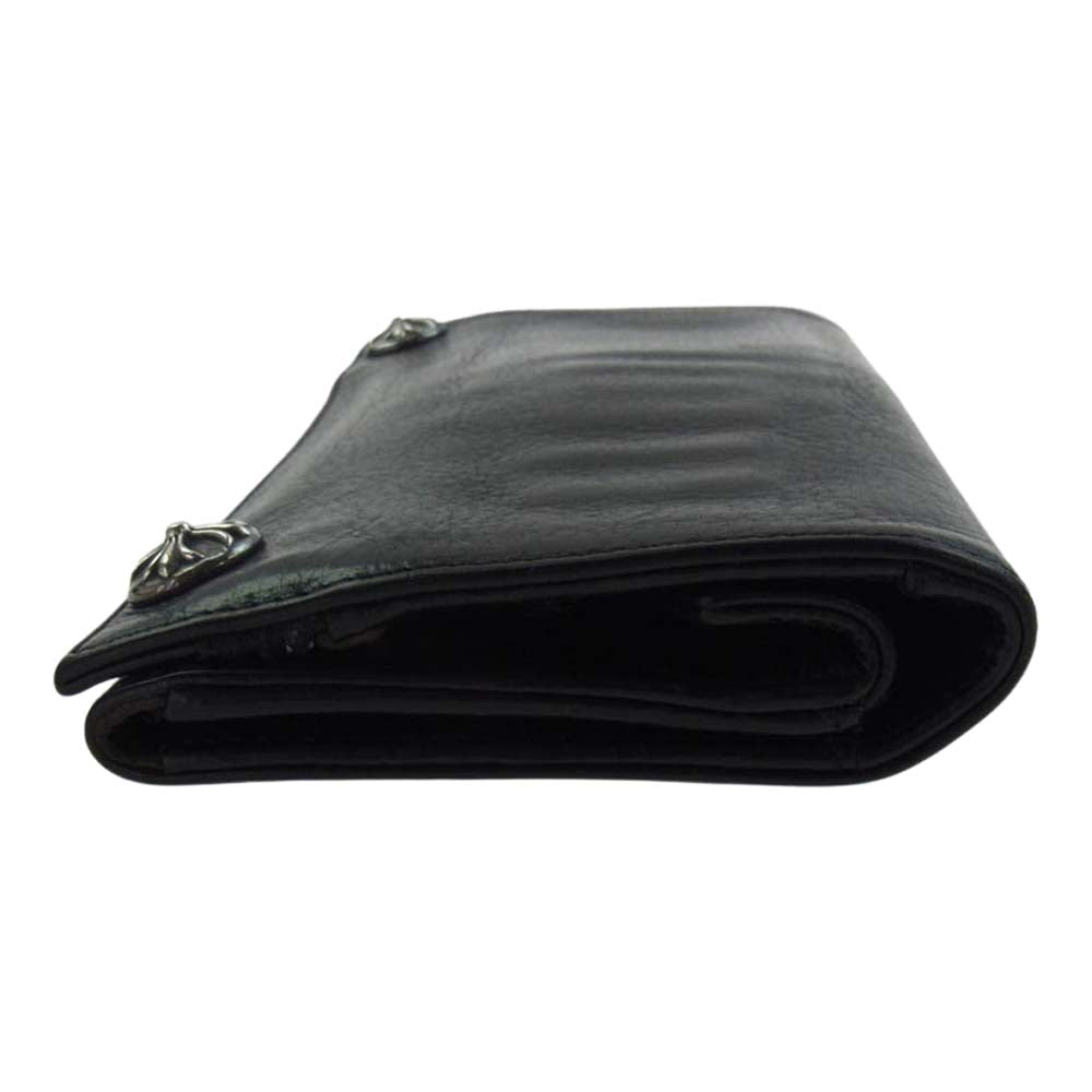 CHROME HEARTS クロムハーツ(原本無) 3FOLD 3フォールド レザー ウォレット ケルティックフローラル ボタン ブラック系【中古】