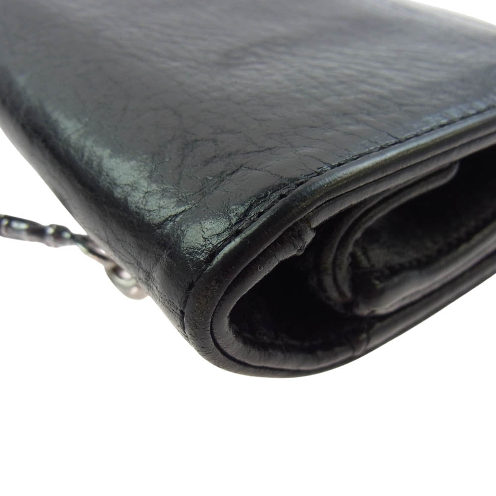 CHROME HEARTS クロムハーツ(原本無) OLD オールド 1ZIP 1ジップ レザー ウォレット ケルティック ボタン ブラック系【中古】