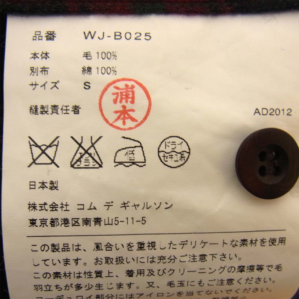 | 商品名 | WJ-B025 ジュンヤワタナベ JUNYA WATANABE コーデュロイ エルボーパッチ ウールチェック シャツ |