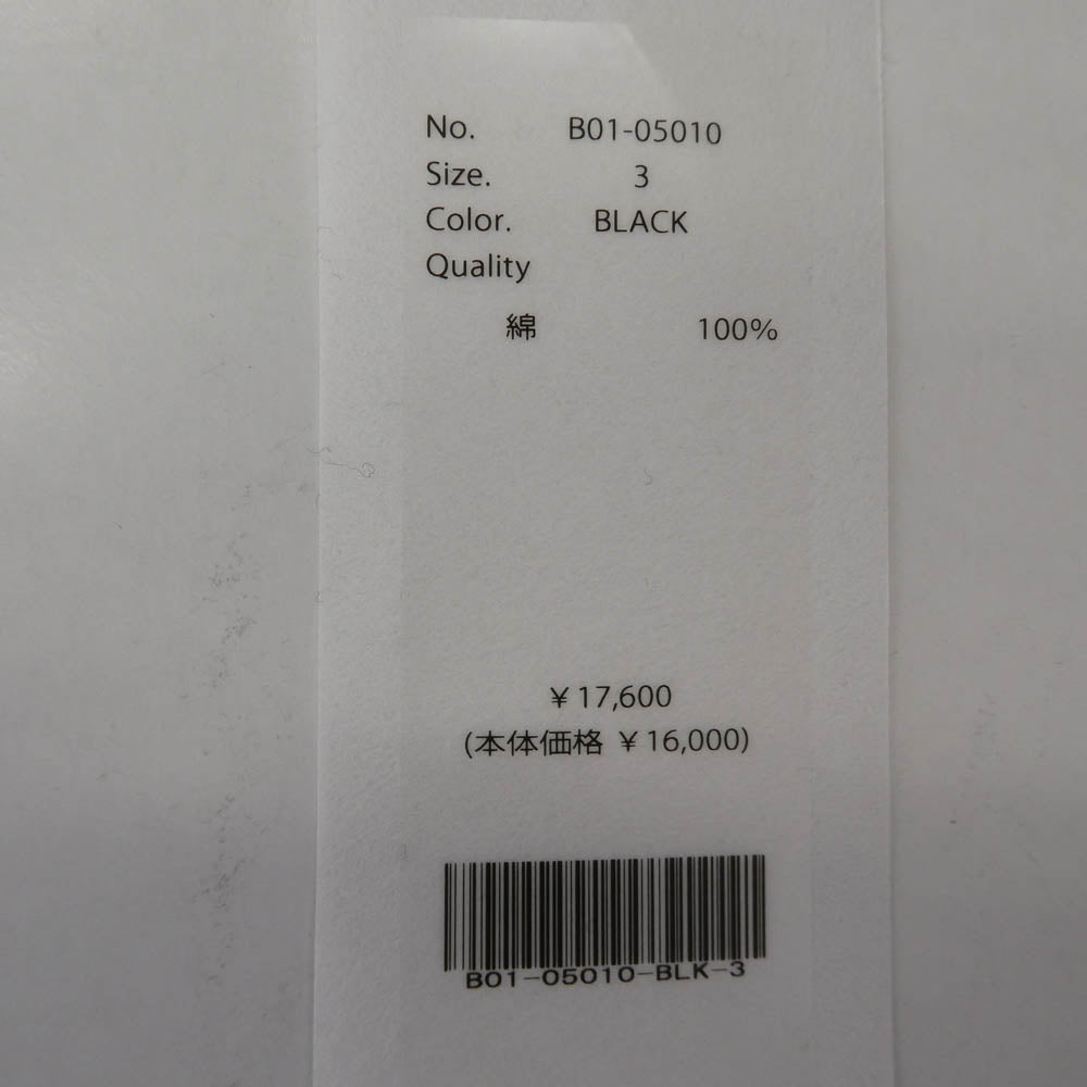 COMOLI コモリ 25SS B01-05010 コットンジャージ 半袖 Tシャツ カットソー ブラック系 3【中古】