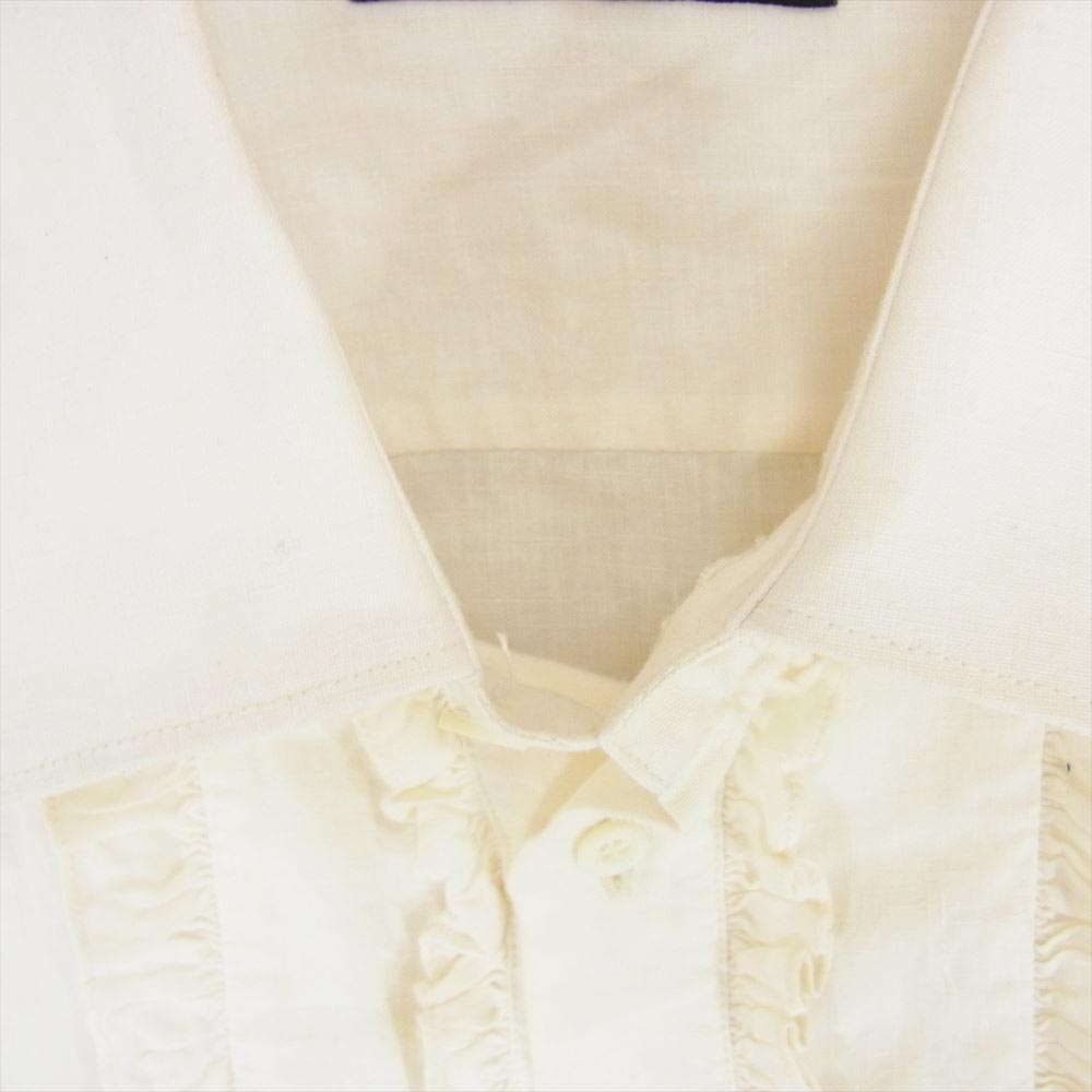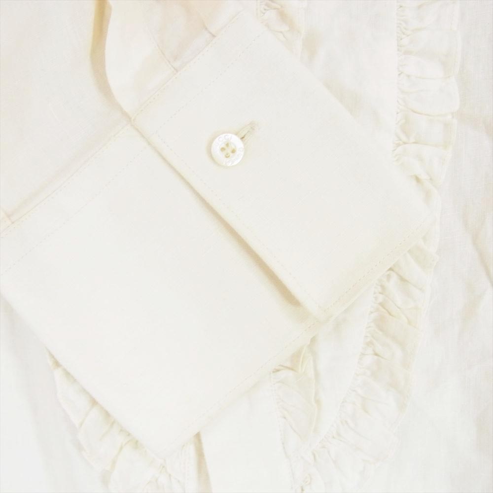 GUCCI グッチ 303-0624-6332 フロント フリル リネン 長袖 シャツ オフホワイト系 42【中古】