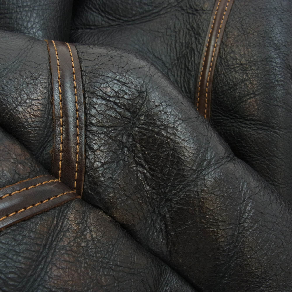 ※タグの印字が剥げており、サイズ等不明でございます。※袖口や裾に毛玉がございます。※レザー特有の使用感、キズ、スレ、シワ、汚れなどはございます。中古商材にご不安な方、完璧な商品状態をお求めの方はお控え下さい。 |