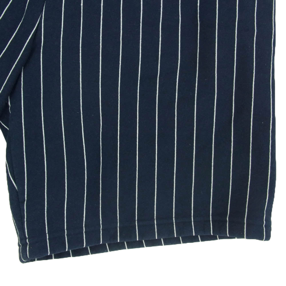 右腕にモンクレールのプリント、左腕にはオフホワイトを象徴するストライプ。個性的な形状のフードに大きめのポケットが特徴のダウンコート。