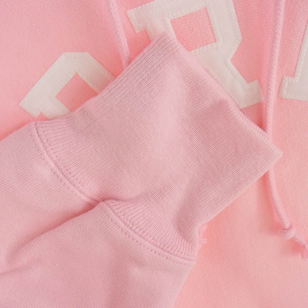 右腕にモンクレールのプリント、左腕にはオフホワイトを象徴するストライプ。個性的な形状のフードに大きめのポケットが特徴のダウンコート。