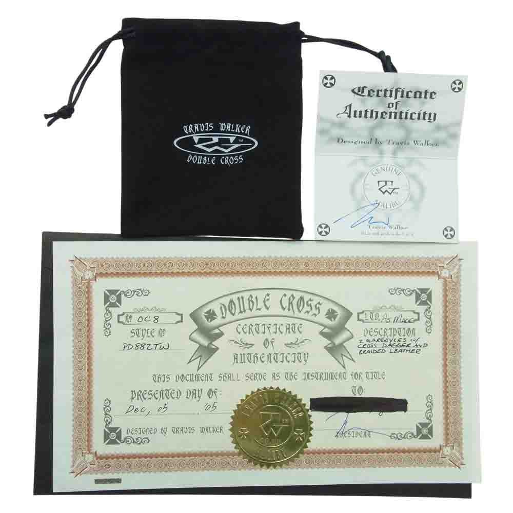 TRAVIS WALKER トラヴィスワーカー ギャランティ付属 CROSS DAGGER WITH 2 GARGOYLE WITH BRAIDED LEATHER NECKLACE クロスダガー 2ガーゴイル レザーネックレス【中古】