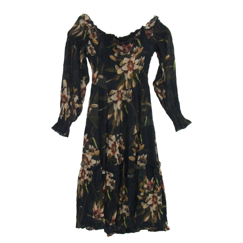ALLSAINTS オールセインツ フラワー総柄 レーヨン ロング ドレス ワンピース ブラック系 UK 4【中古】