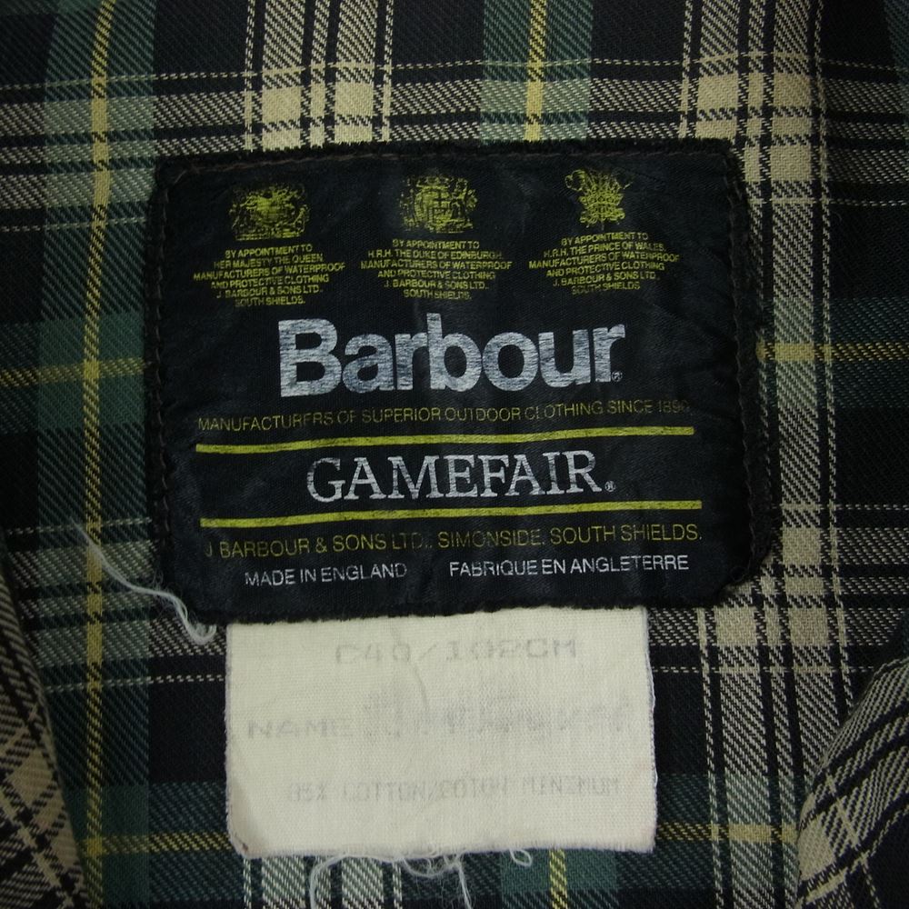 Barbour バブアー 英国製 3ワラント GAMEFAIR ゲームフェア オイルド ジャケット カーキ系 C40/108cm【中古】