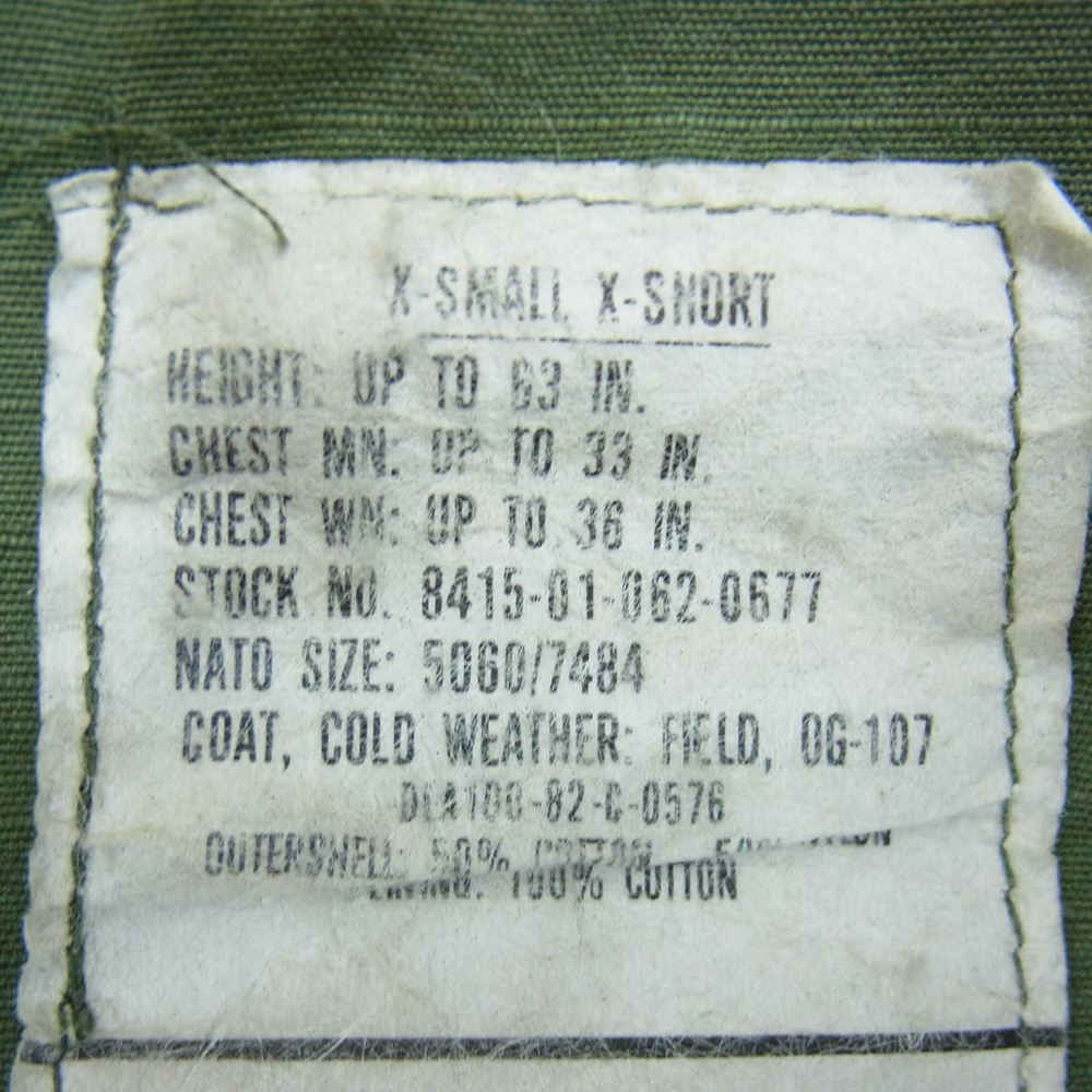 アメリカ軍 82年製 80s 8415-01-062-0677 M-65 フィールド ミリタリー ジャケット カーキ系 XS【中古】