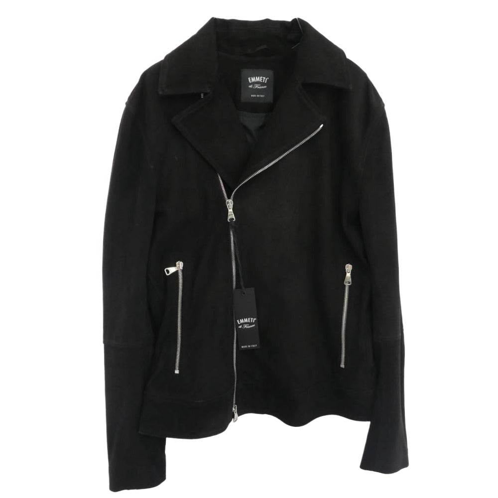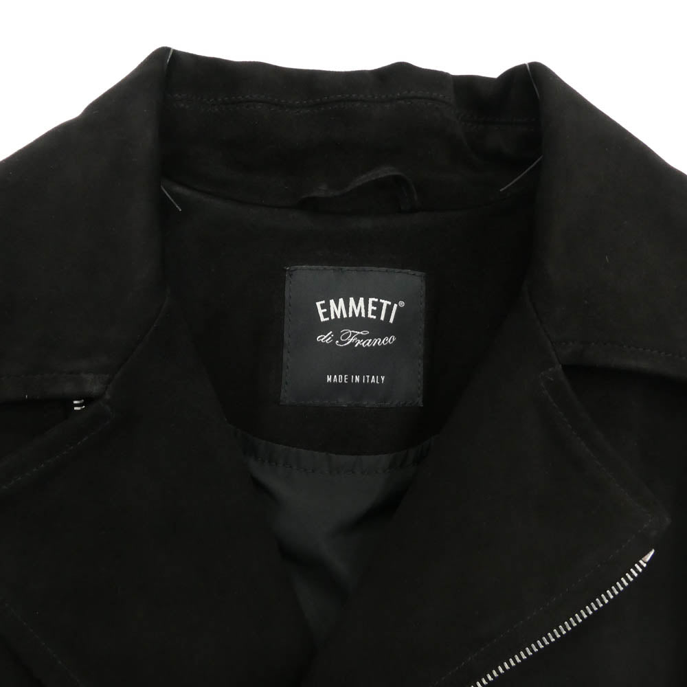 EMMETI エンメティ HAMILTON SILV ゴートスキン ダブル スエード ライダース ジャケット ブラック系 42【中古】