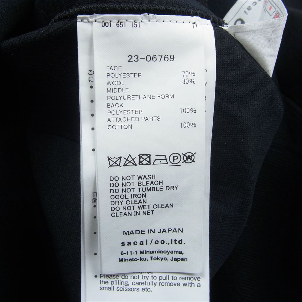 Sacai サカイ 23AW 23-06769 Suiting Bonding Hoodie スーチング ボンディング フーディー プルオーバー パーカー ブラック系 2【中古】