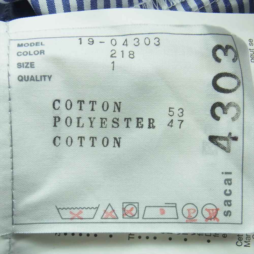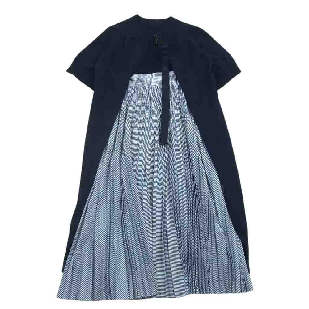 Sacai サカイ 19-04303 バックプリーツ ワンピース ダークネイビー系 ブルー系 ホワイト系 1【美品】【中古】