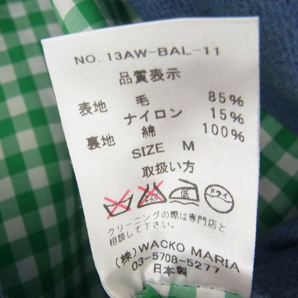 WACKO MARIA ワコマリア 13AW-BAL-11 × WOOLRICH ウールリッチ ウール チェスター バルカラー コート ライトブルー系 M【中古】