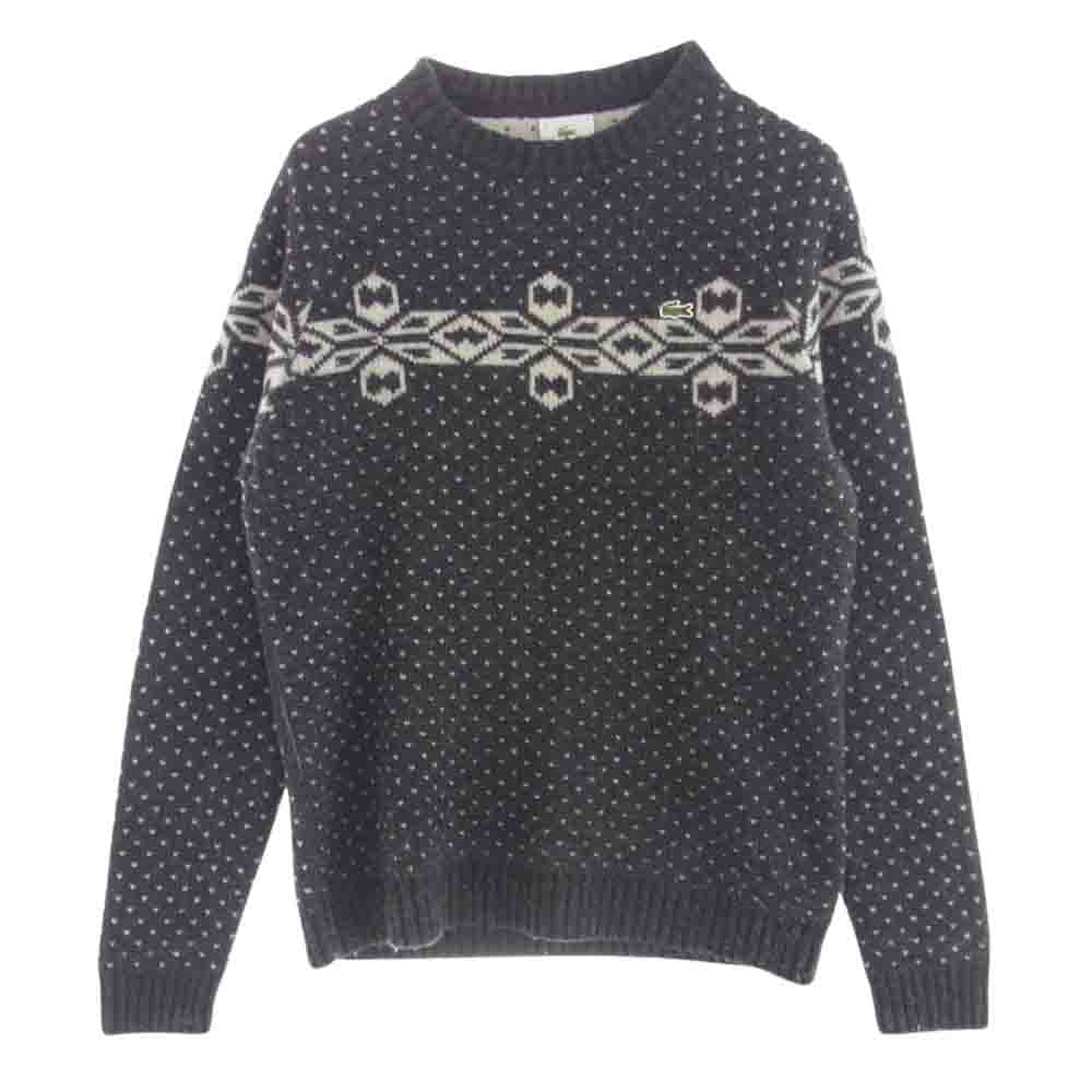 LACOSTE ラコステ スノー ジャカード ウール クルーネック ニット セーター グレー系 3【中古】