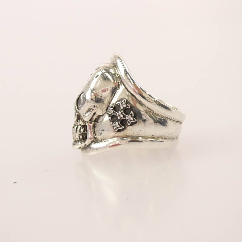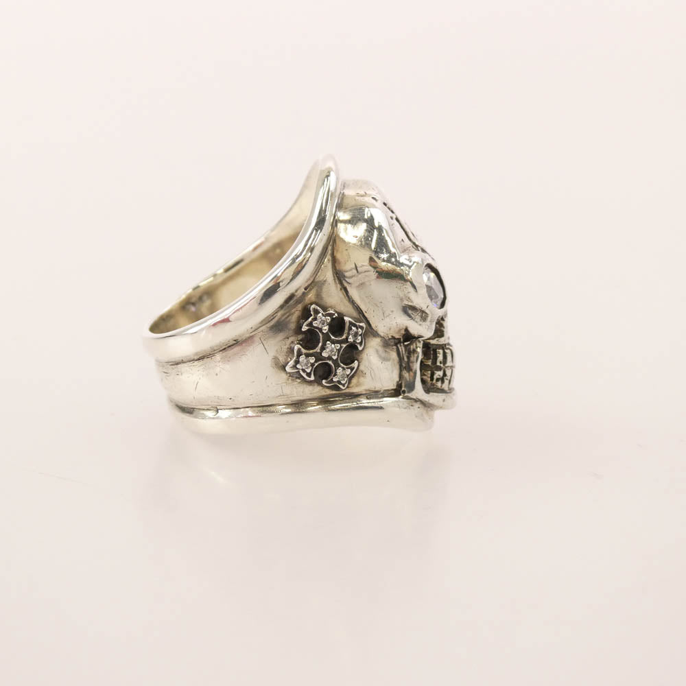 Loree Rodkin ローリーロドキン SKULL RING スカル ジルコニアアイ サイドクロス ストーン リング シルバー系 21号【中古】