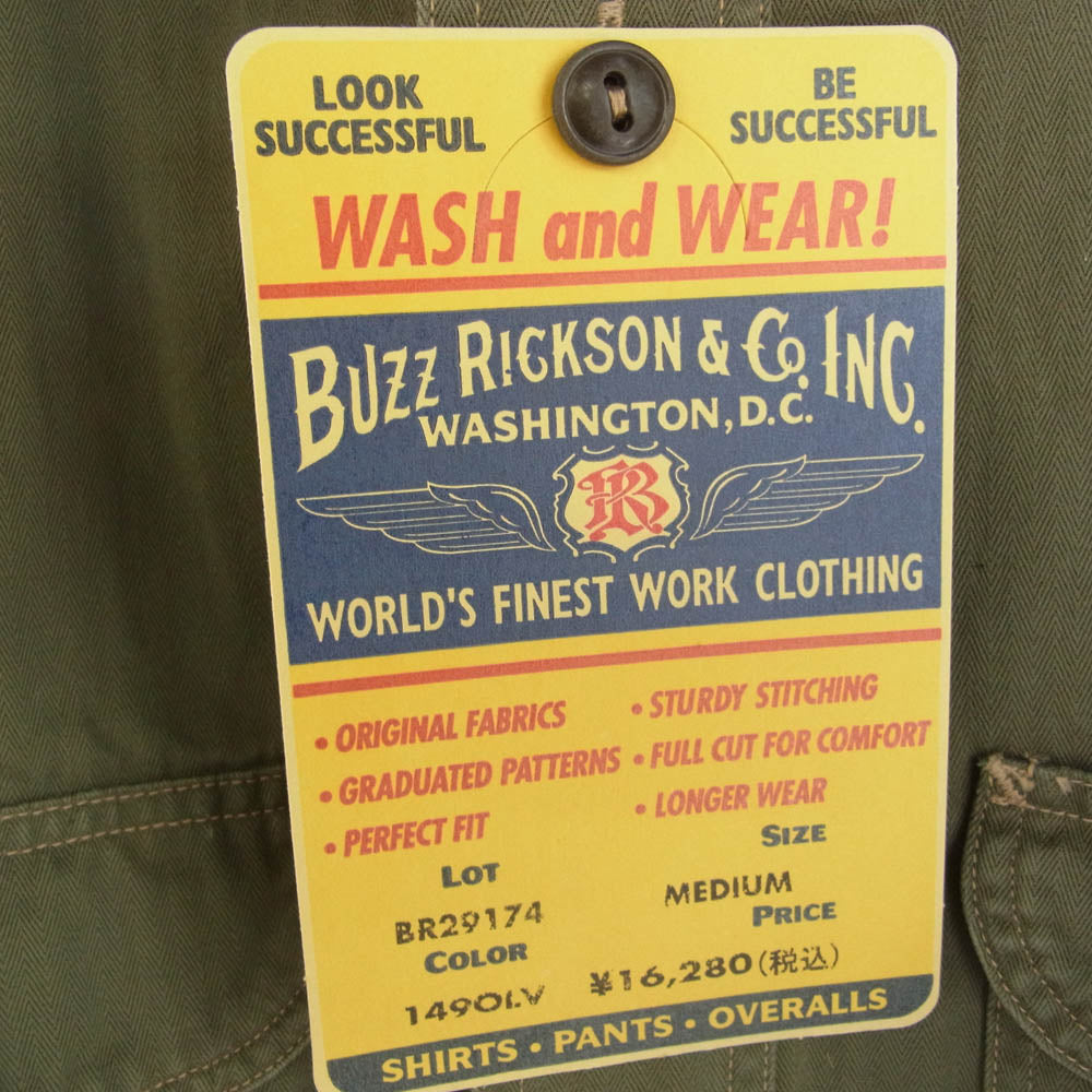 Buzz Rickson's バズリクソンズ BR29174 HERRINGBONE WORK SHIRT オリーブ トップス カジュアルシャツ カーキ系 M【新古品】【未使用】【中古】