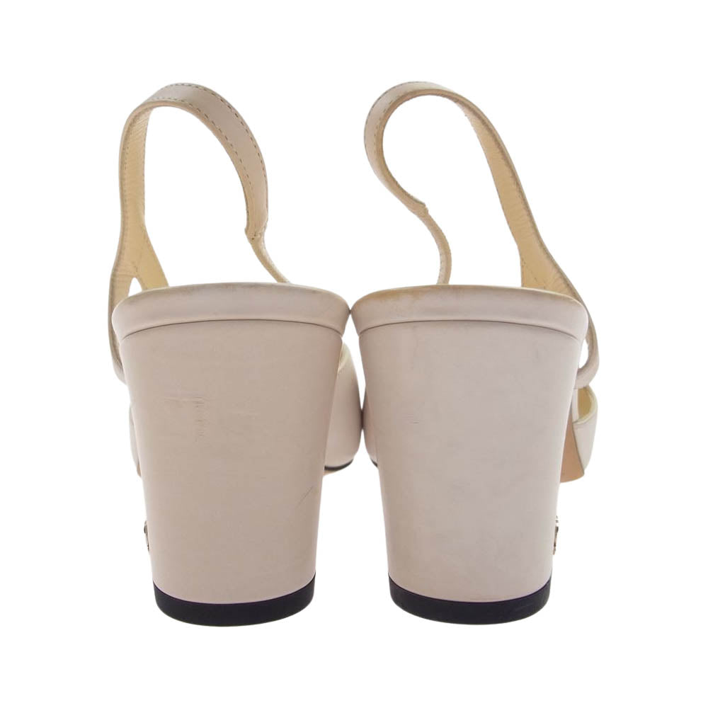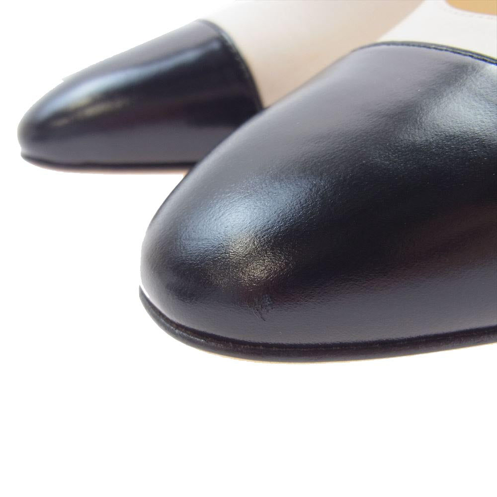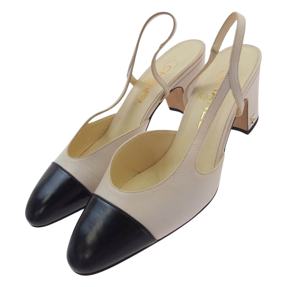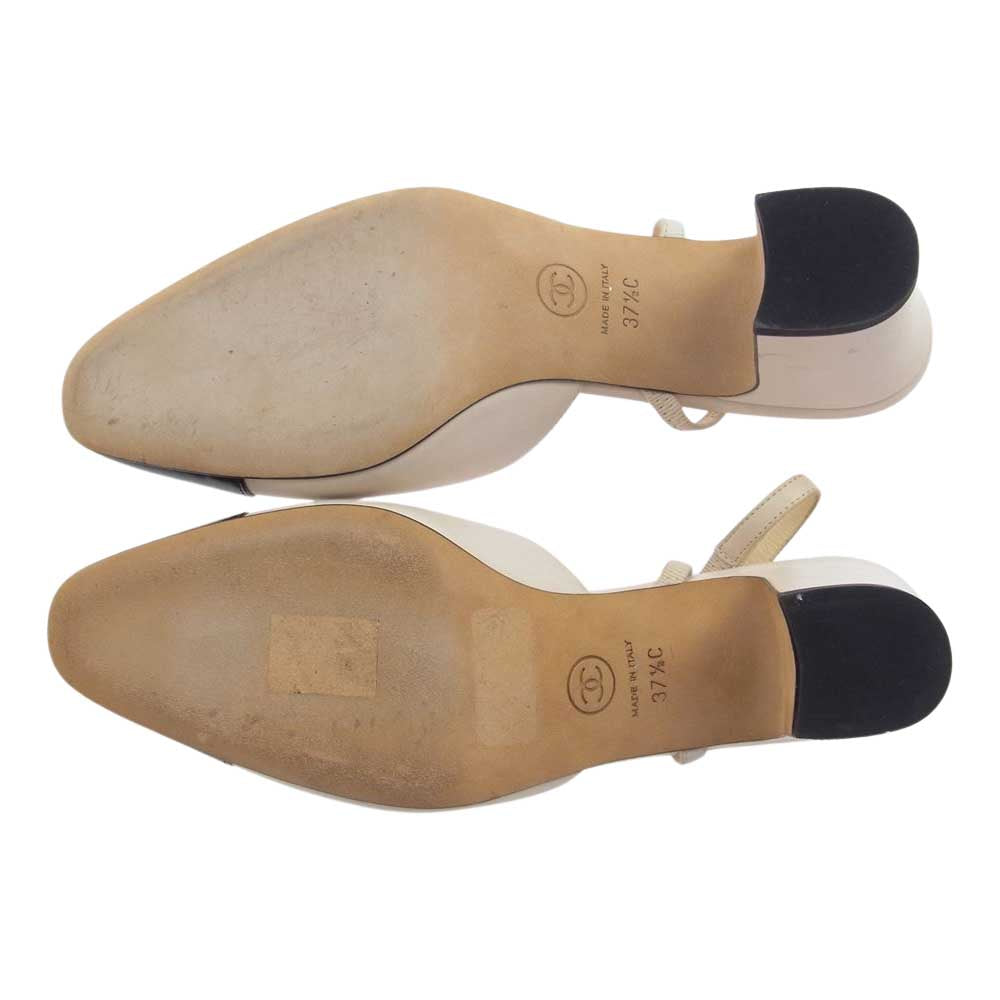 CHANEL シャネル A G31318 イタリア製 ココマーク付 2トーン スリングバック シューズ ヒール パンプス レザー オフホワイト系 ブラック系 37 1/2C【中古】