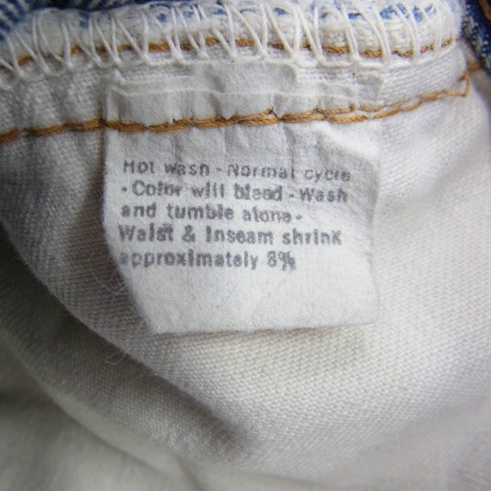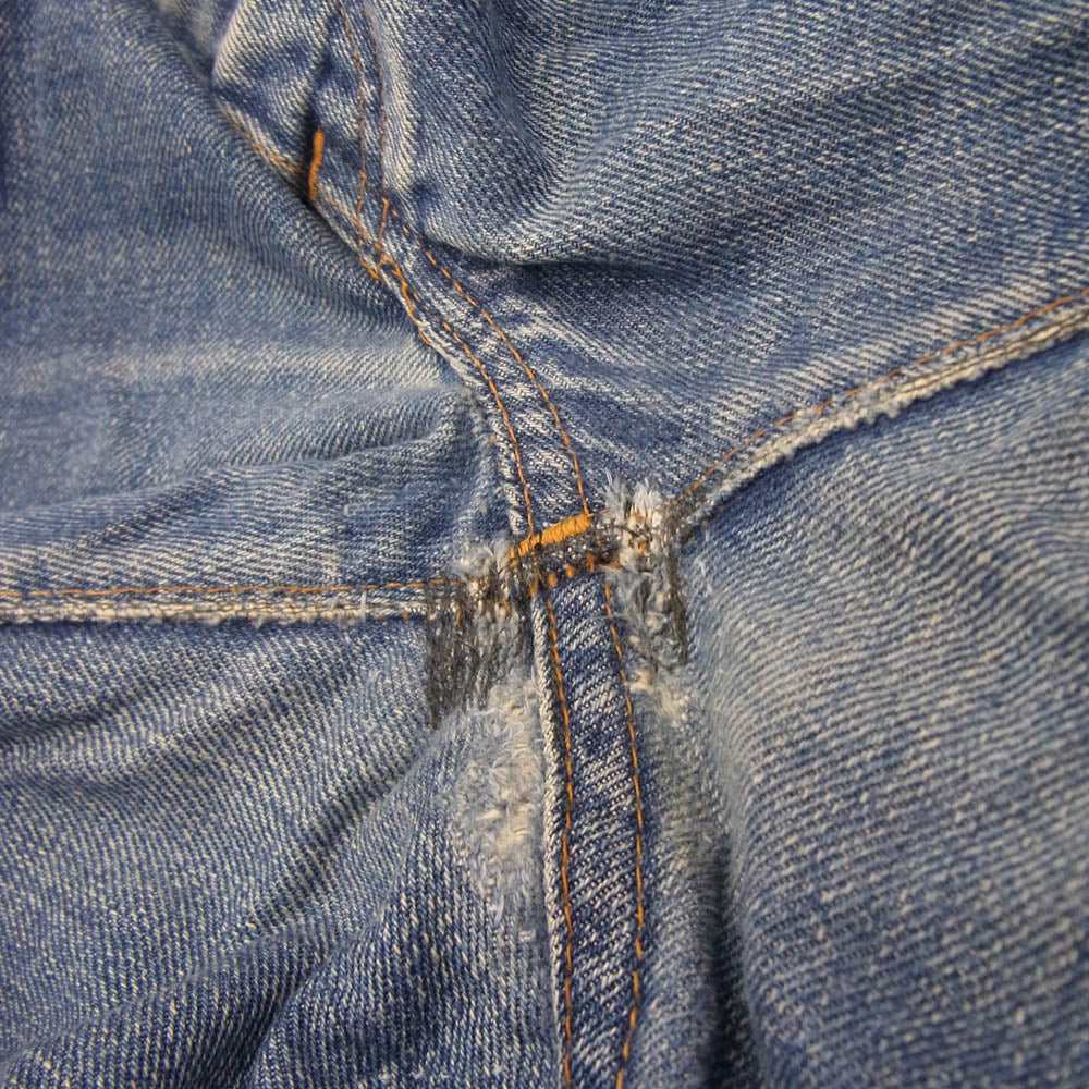 特記事項 ※股下、右太ももにリペア箇所がございます※年代物ですので各部状態にご不安な方、神経質な方、細部まで完璧な状態をお求めの方はご購入をお控え下さい。 ※色残り3/10程度/紙パッチ残り7/10程度/裾チェーンステッチ(詳細不明)/スモールe /バックポケット裏シングルステッチ/トップボタン裏刻印6/コインポケット裏チェーンステッチ/平行ステッチ/※保管、陳列時の傷擦れ、毛羽立ち、生地アタリ、薄い汚れなどはございます。中古商材にご不安な方、完璧な商品状態をお求めの方はお控え下さい。 ※裾上げされている可能性ありますので実寸サイズをご確認下さいませ。