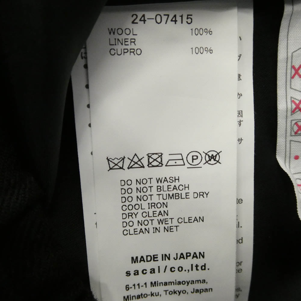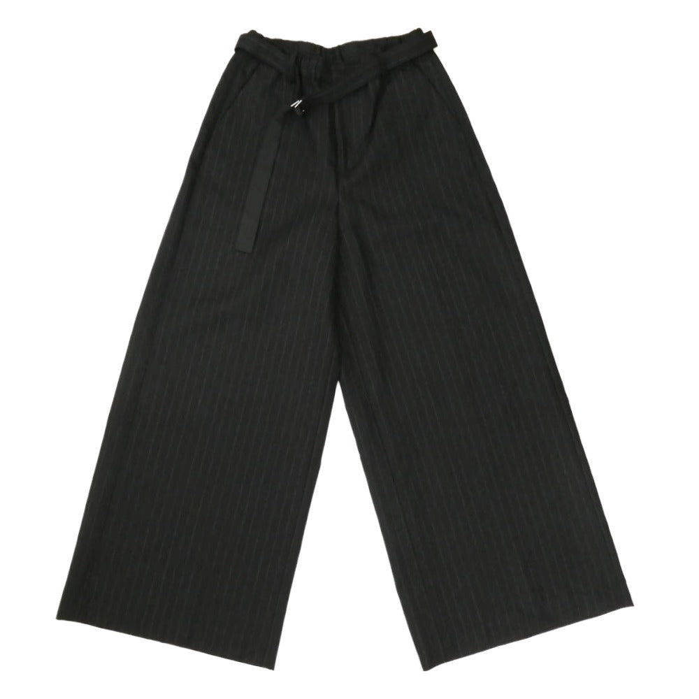 Sacai サカイ 24AW 24-07415 Chalk Stripe Pants ストライプ ベルテッド ウール ワイド スラックスパンツ ブラック系 2【中古】