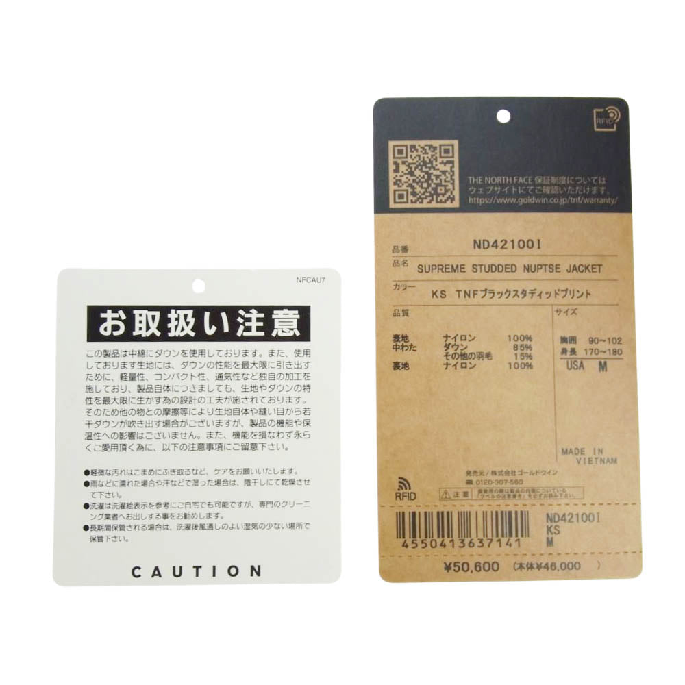 Supreme シュプリーム 21SS ND42100I × THE NORTH FACE ザ ノースフェイス Studded Nuptse Jacket スタッズ ヌプシ ダウン ジャケット ブラック系 ホワイト系 M【極上美品】【中古】