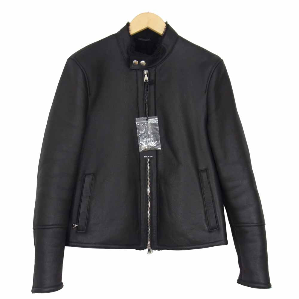 エンメティ H MOUTON アッカムートン 羊革 干場義雅 別注 シングル ライダース ジャケット ブラック系 46【極上美品】【中古】