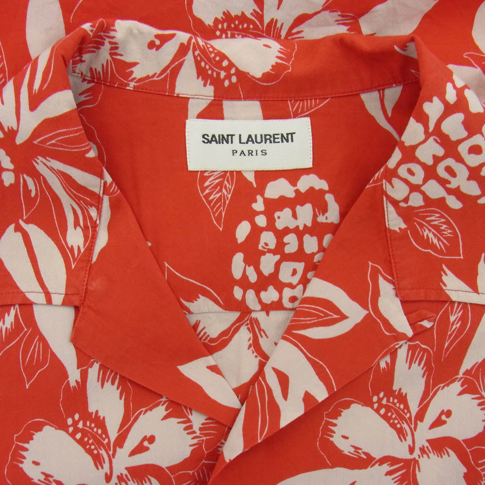 SAINT LAURENT サンローラン 17SS 415167 Y316P ハイビスカス パイナップル柄 アロハ 半袖 シャツ レッド系 37【中古】