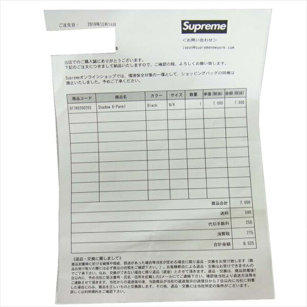 Supreme シュプリーム 19AW Shadow 6-Panel Cap 野球帽 キャラクター キャップ ブラック系【極上美品】【中古】