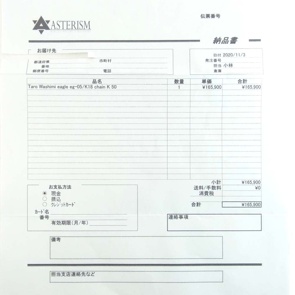 TARO WASHIMI ワシミタロウ 鷲見太郎 販売証明カード付属 鷲見太郎 EAGLE-05 K18 CHAIN K50 イーグル チェーン ネックレス シルバー系 ゴールド系【極上美品】【中古】