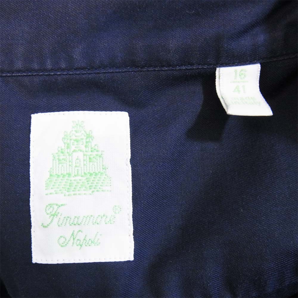FINAMORE フィナモレ 37246 ワイドカラー コットン シャツ ネイビー系 16/41【美品】【中古】
