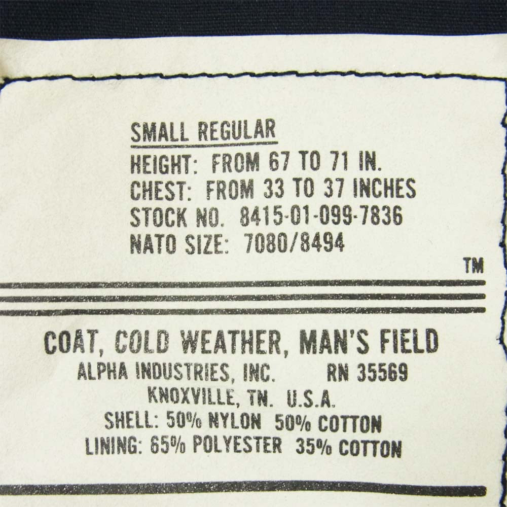 ALPHA アルファ USA製 M-65 ミリタリージャケット アメリカ製 ネイビー系 S【中古】