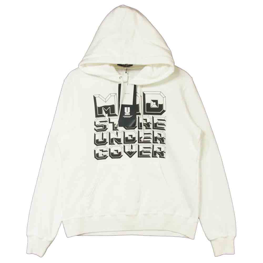 UNDERCOVER アンダーカバー MUX9801 ロゴ フード プルオーバー パーカー コットン ホワイト系 2【美品】【中古】