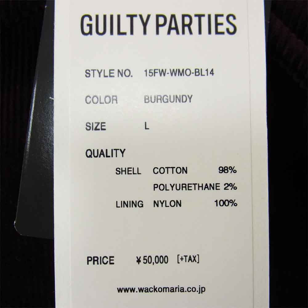 WACKO MARIA ワコマリア 15AW 15FW-WMO-BL14 CORDUROY COACH JACKET 中綿シンサレート コーデュロイ コーチ ジャケット エンジ系 L【極上美品】【中古】