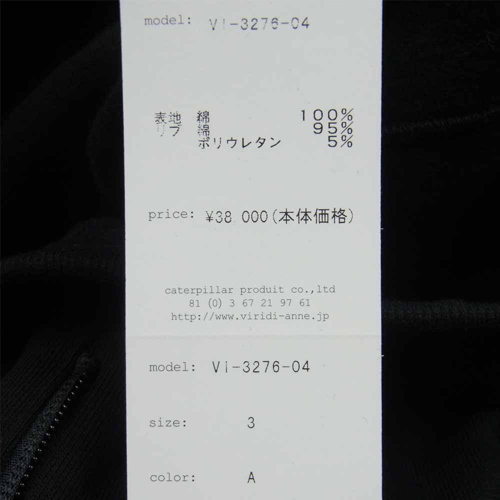 THE VIRIDI-ANNE ザ ヴィリジアン VI-3276-04 コットン フリース サイド ジップ スウェット パンツ ブラック系 3【極上美品】【中古】