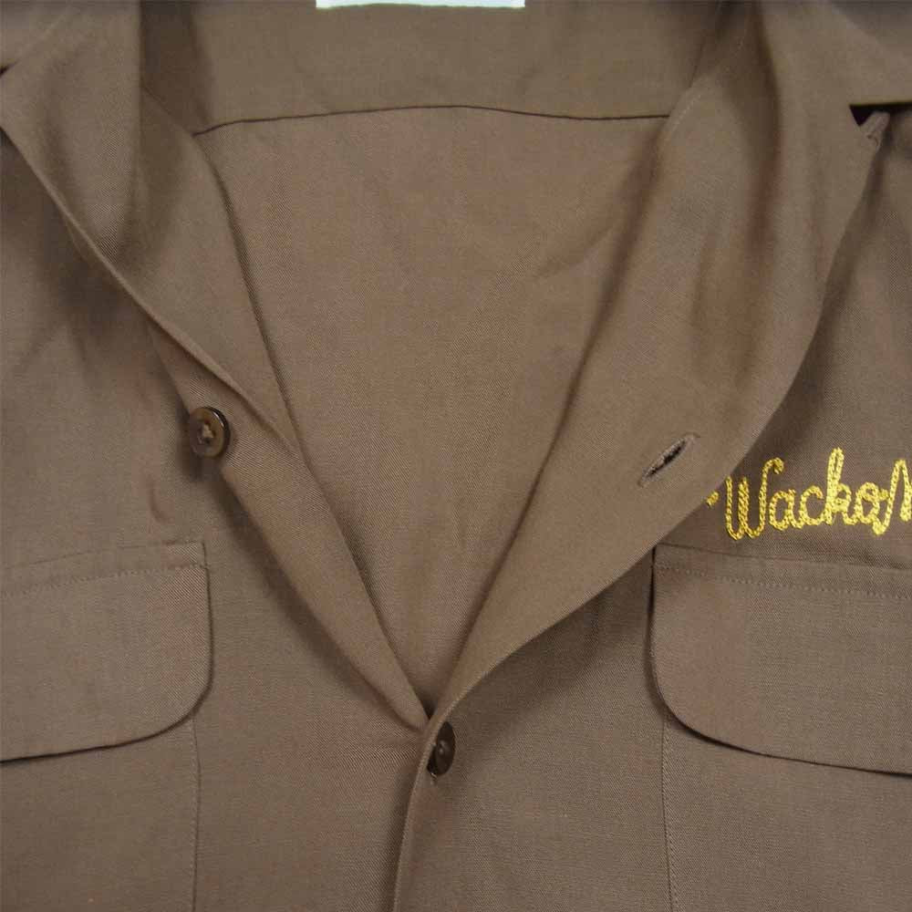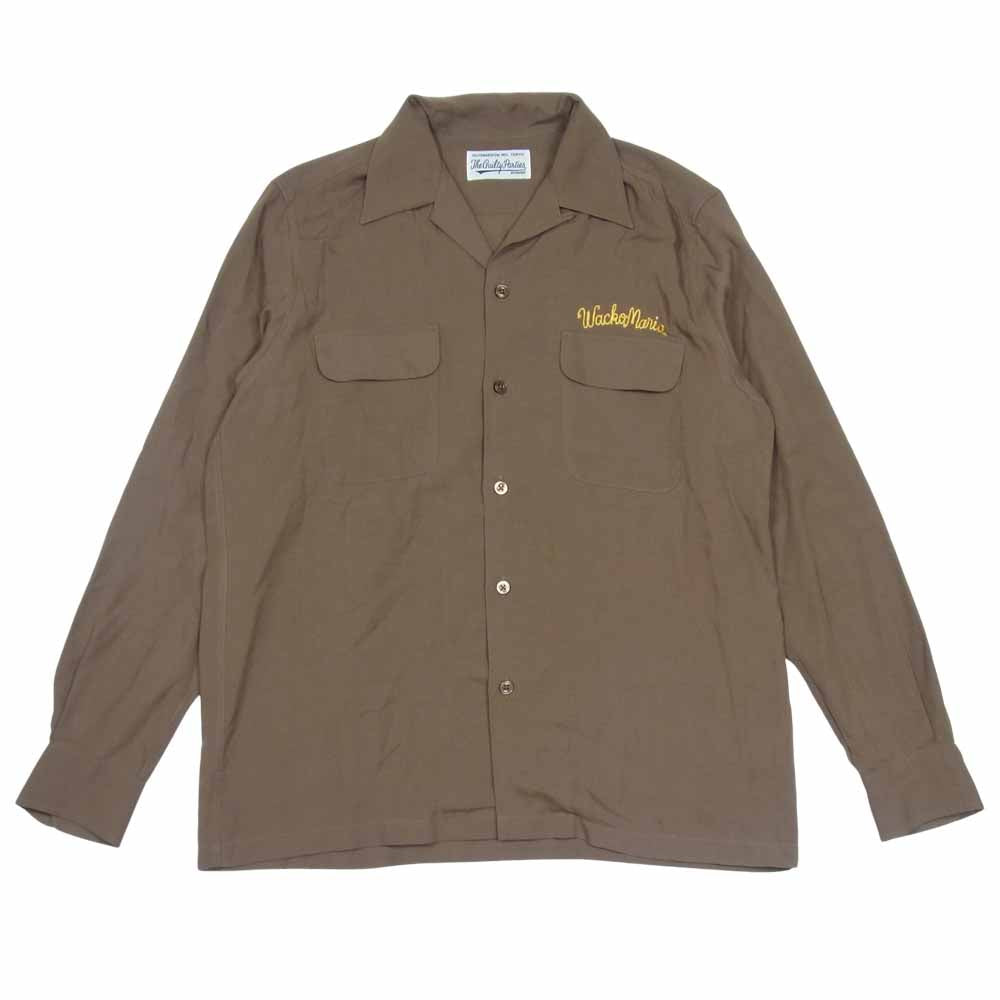 WACKO MARIA ワコマリア ロゴ 刺繍 オープンカラー シャツ 開襟 リヨセル 長袖 ブラウン系 M【中古】