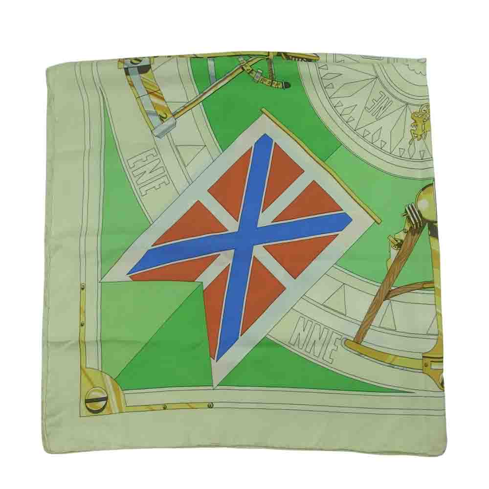 HERMES エルメス カレ90 SEXTANTS 六分儀 スカーフ シルク ライトグリーン系【中古】