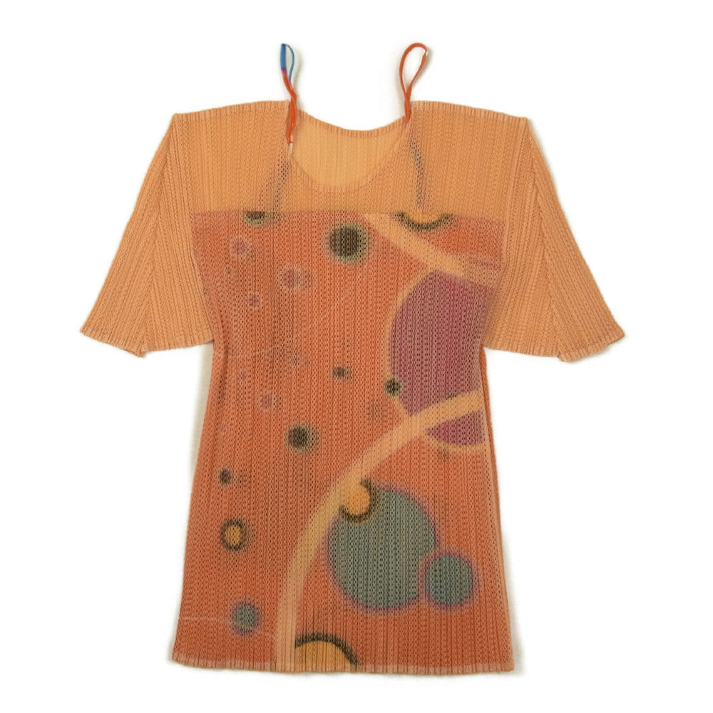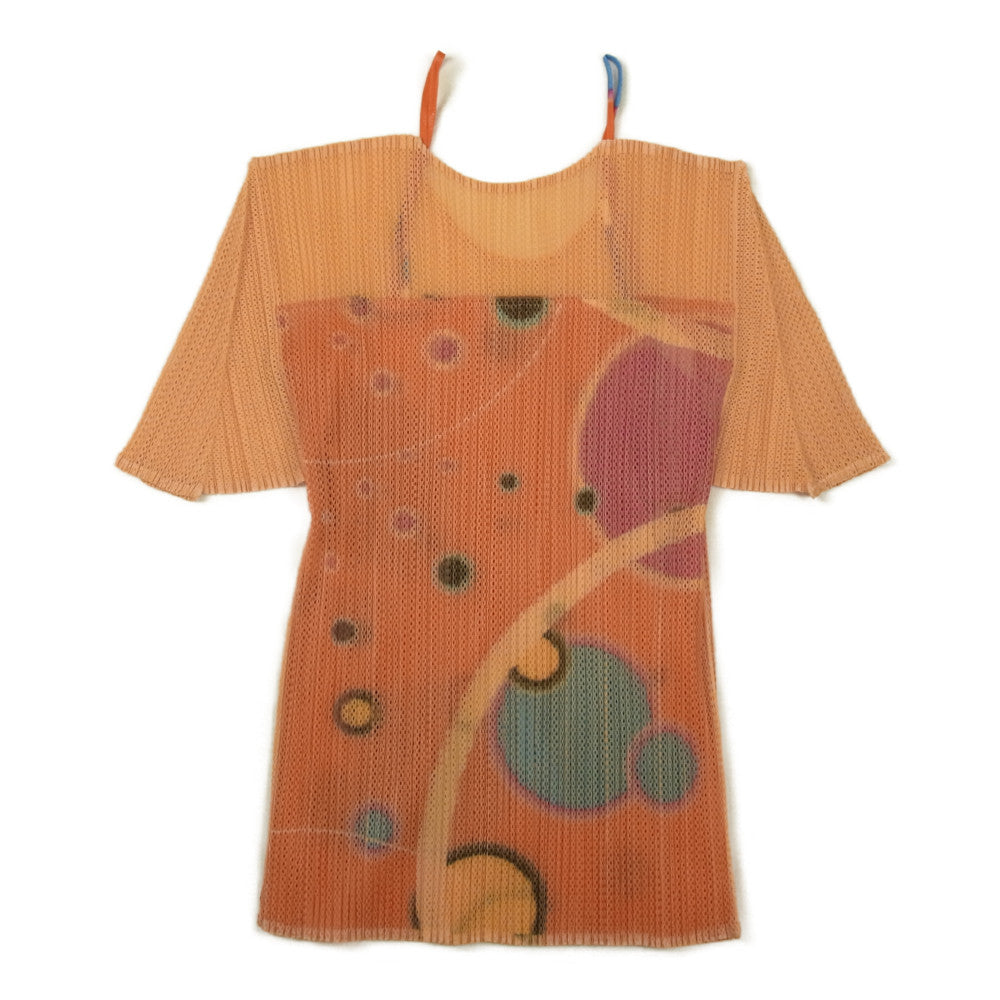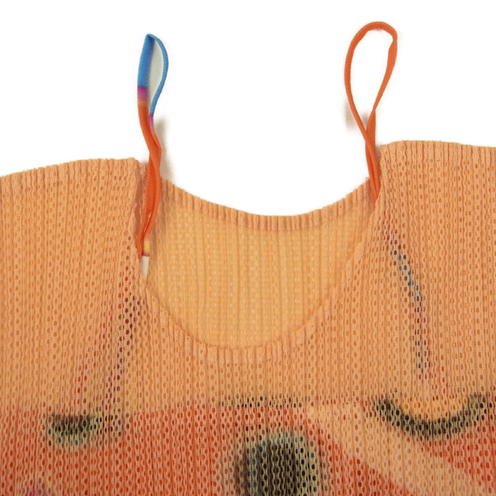 PLEATS PLEASE プリーツプリーズ イッセイミヤケ PP12-JK324 プリーズ加工 転写プリント キャミソール ドッキング メッシュ カットソー オレンジ系 3【美品】【中古】