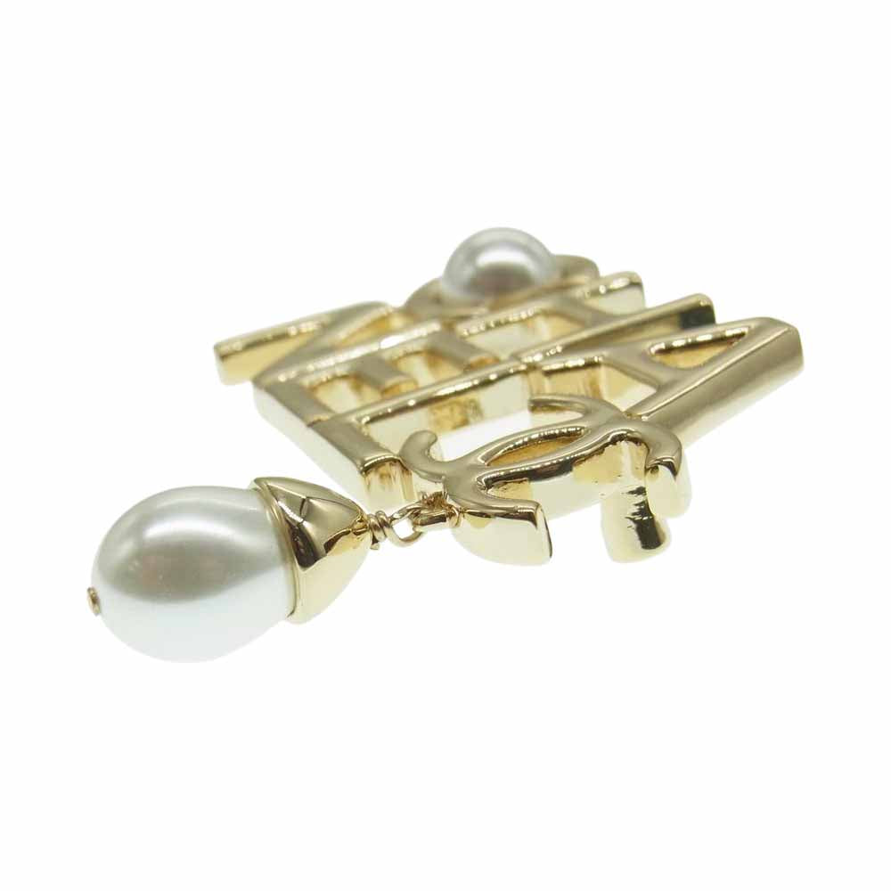 CHANEL シャネル A22P ロゴ パール ブローチ ゴールド系【中古】