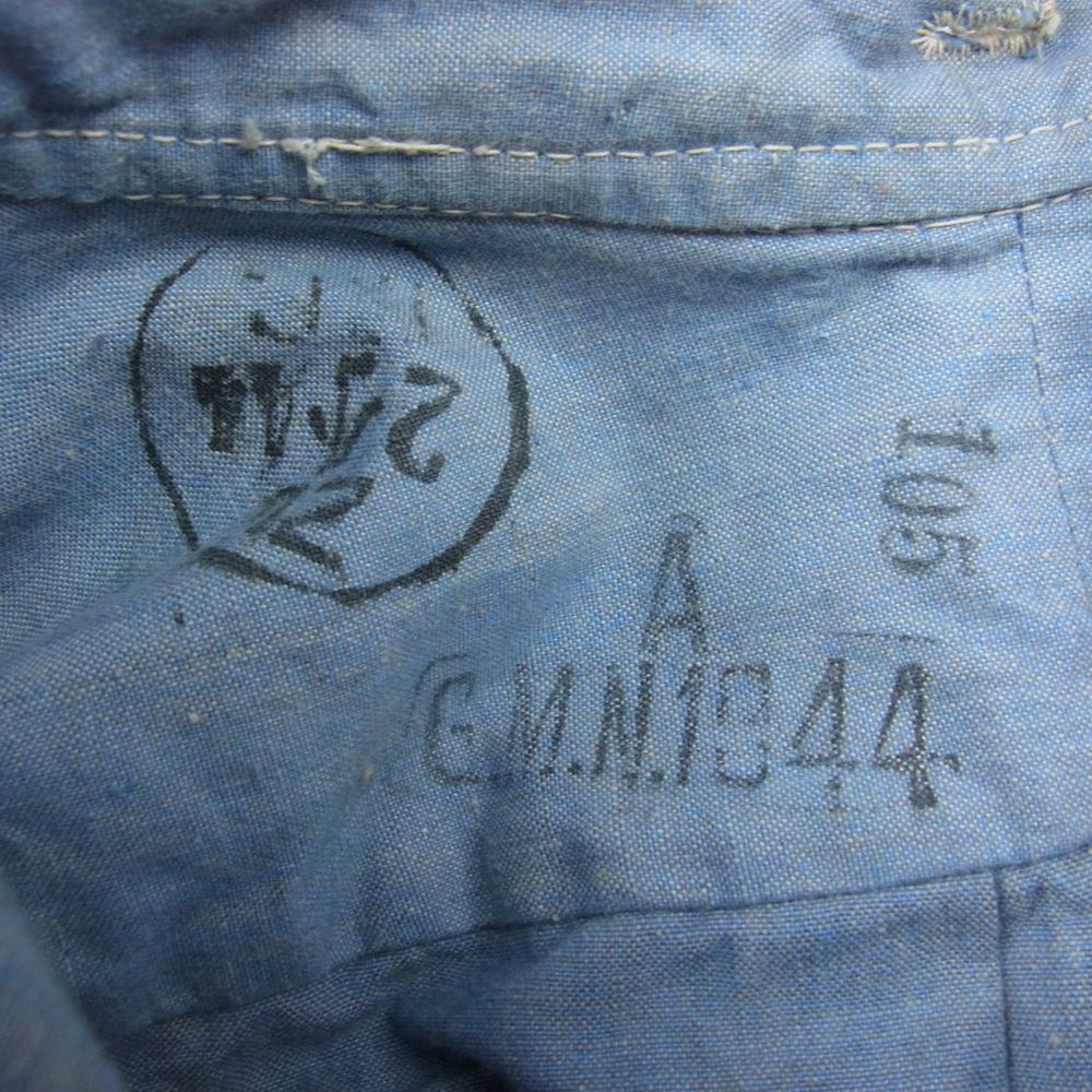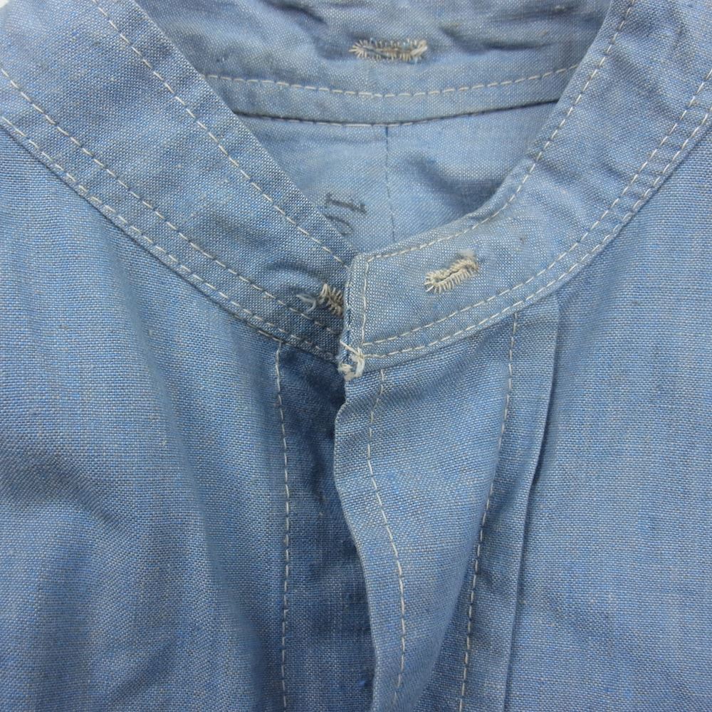 イギリス軍 40s royal air force ロイヤル エアフォース ノーカラー オフィサー 長袖 シャツ インディゴブルー系【中古】