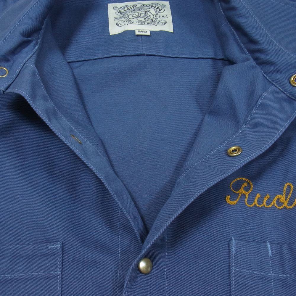 シップジョン Jerry Shirt ジェリー シャツ ツイル ソリッドブラス スナップボタン ワーク シャツ ネイビー系 M【中古】