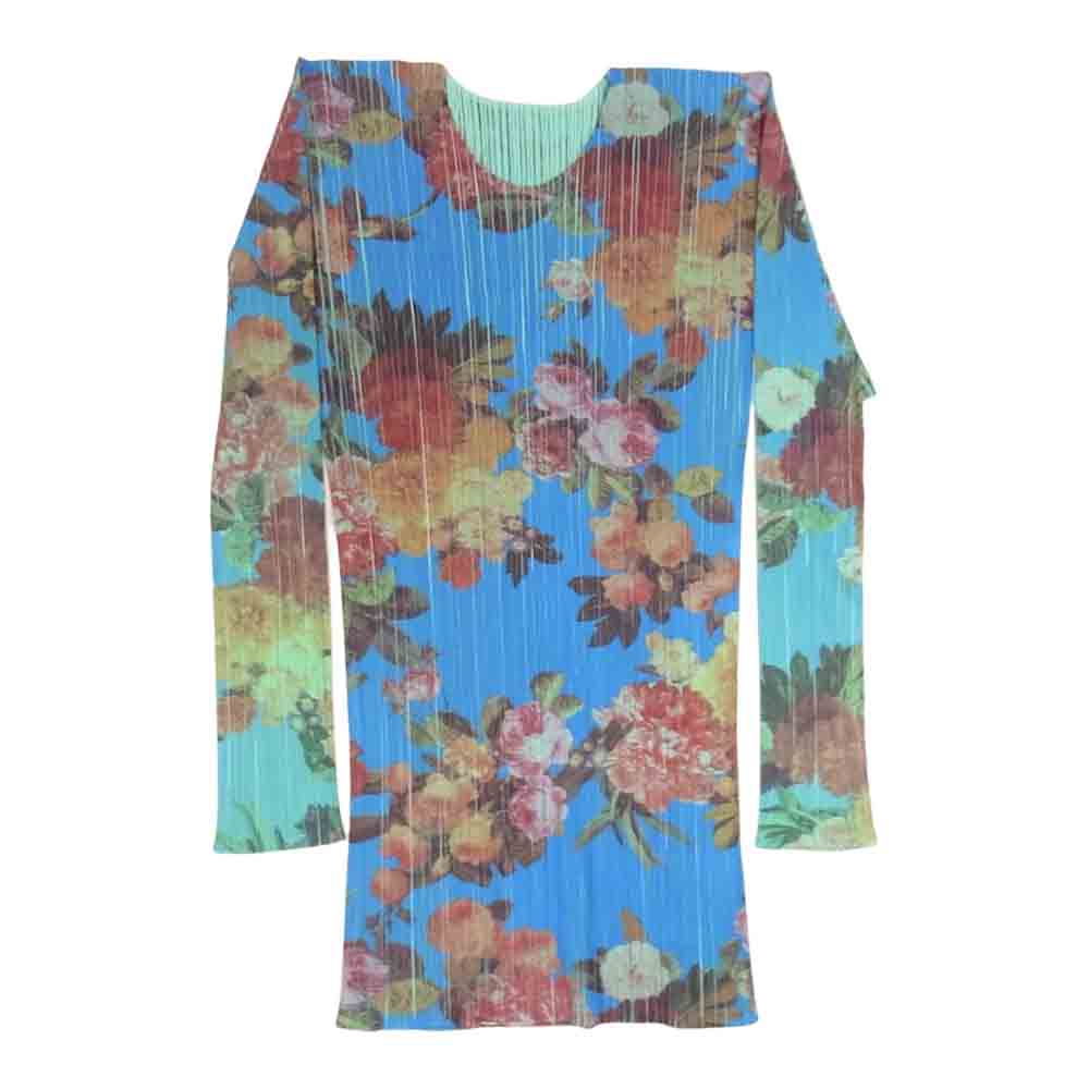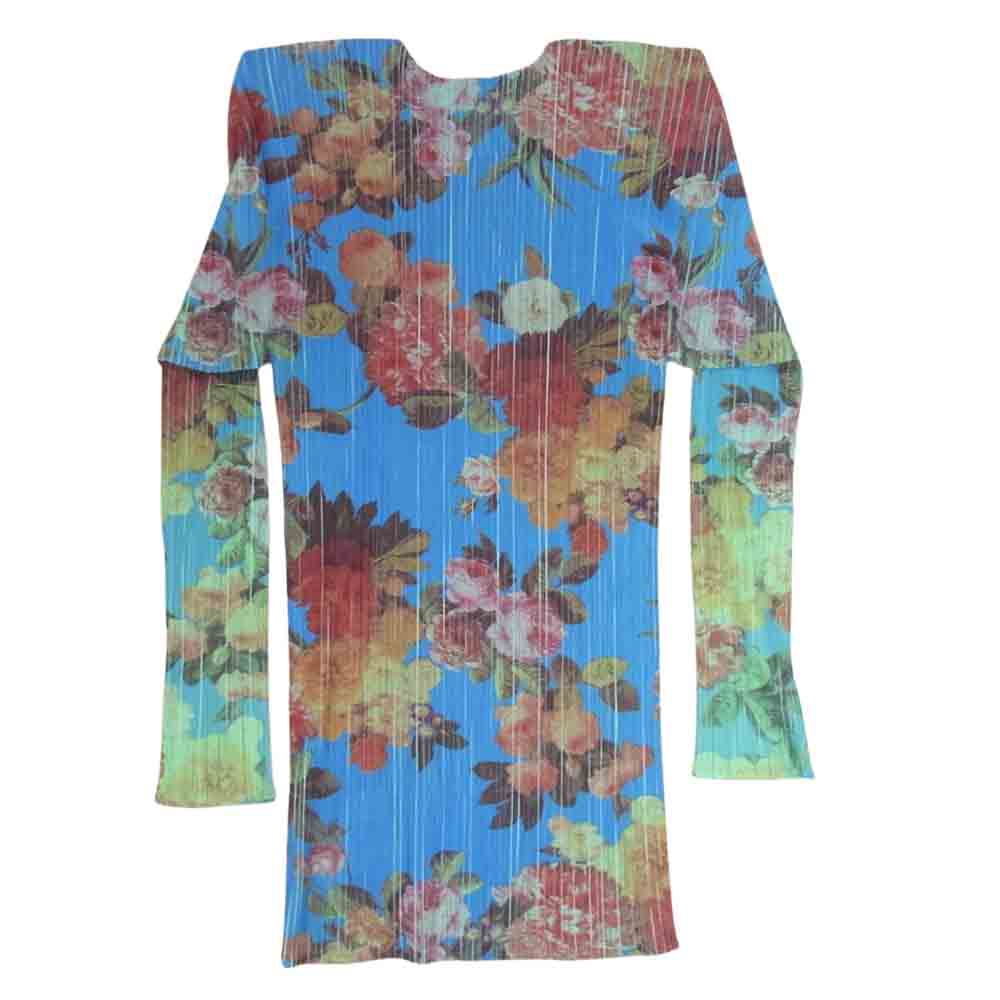 PLEATS PLEASE プリーツプリーズ イッセイミヤケ PP44-JK602 プリーツ加工 転写 プリント フラワー 花柄 カットソー 長袖 ブルー系 4【中古】