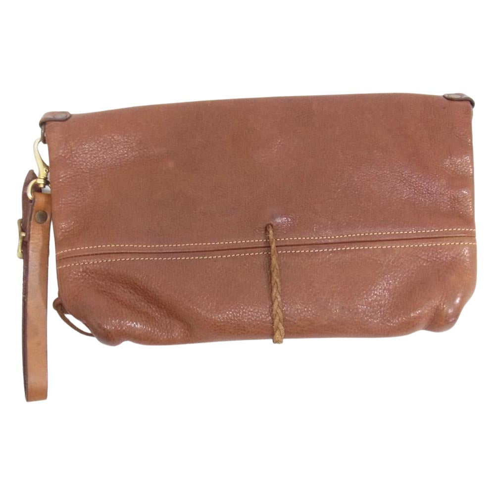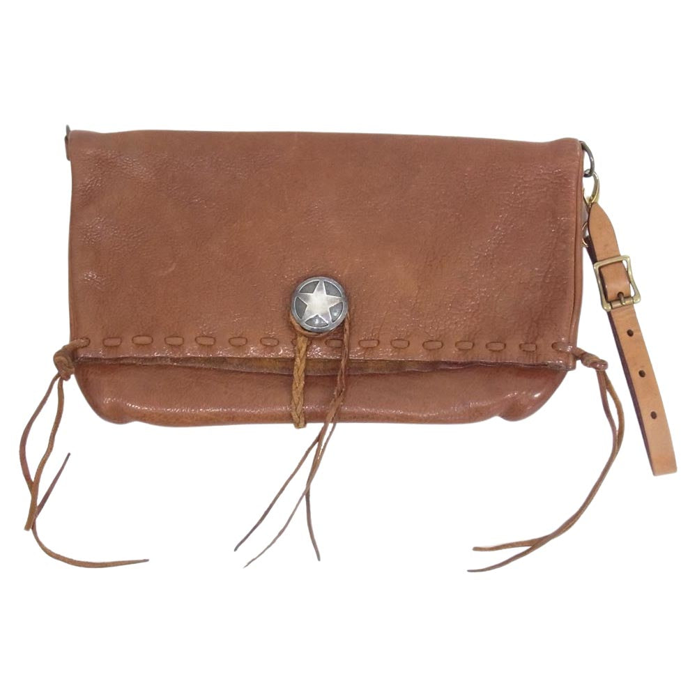 ラッキージョン スターコンチョ レザー クラッチ セカンド バッグ ブラウン系【中古】