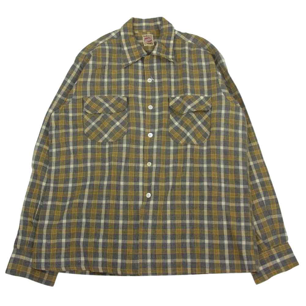 アッシュフィールド 50‘s ヴィンテージ ウール オープンカラー チェック シャツ 長袖 イエロー系 グレー系【中古】