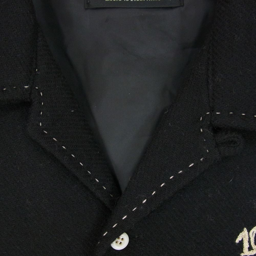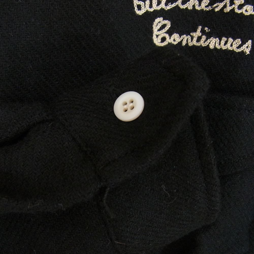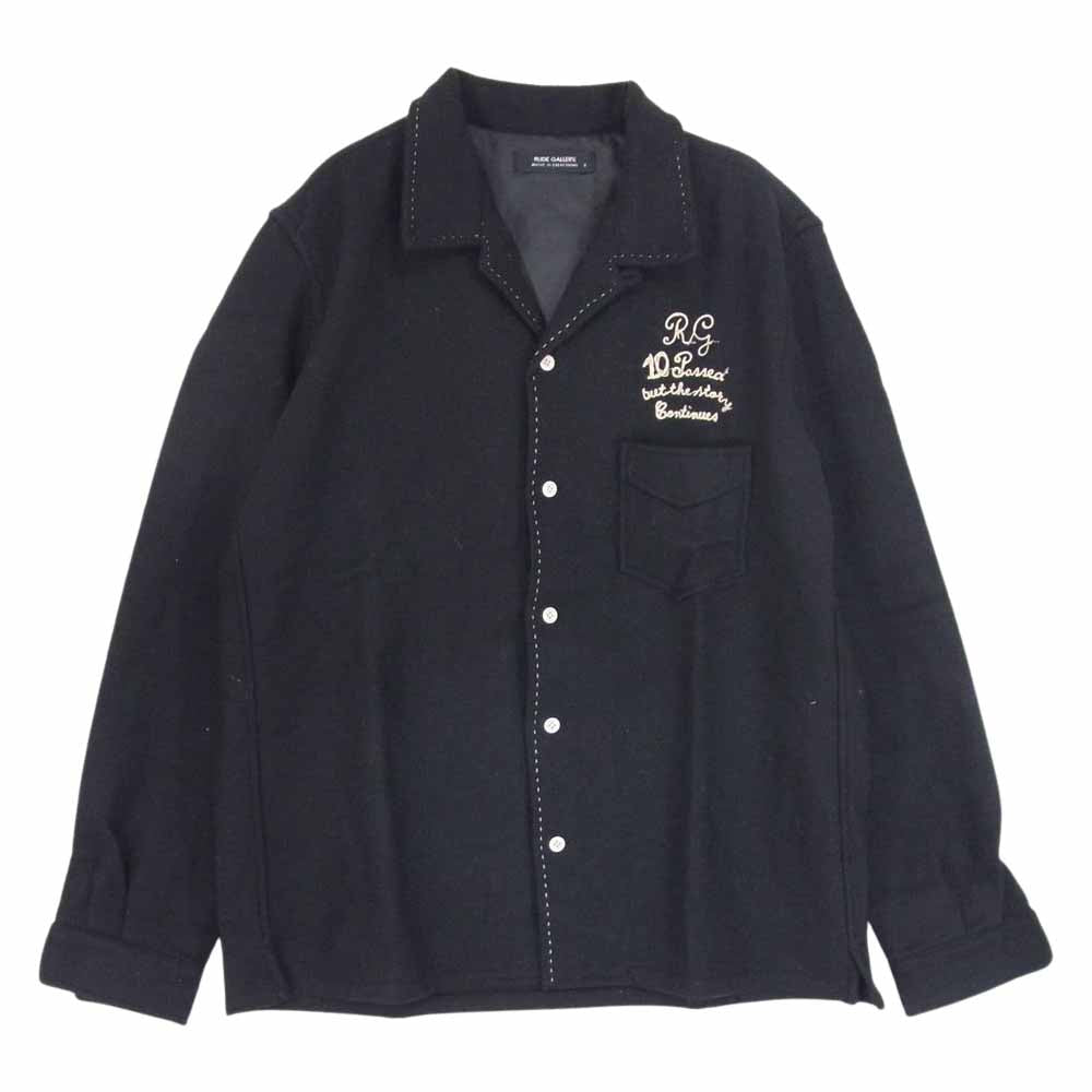 RUDE GALLERY ルードギャラリー チェーンステッチ刺繍 ウール オープンカラー 長袖 シャツ ブラック系 4【中古】