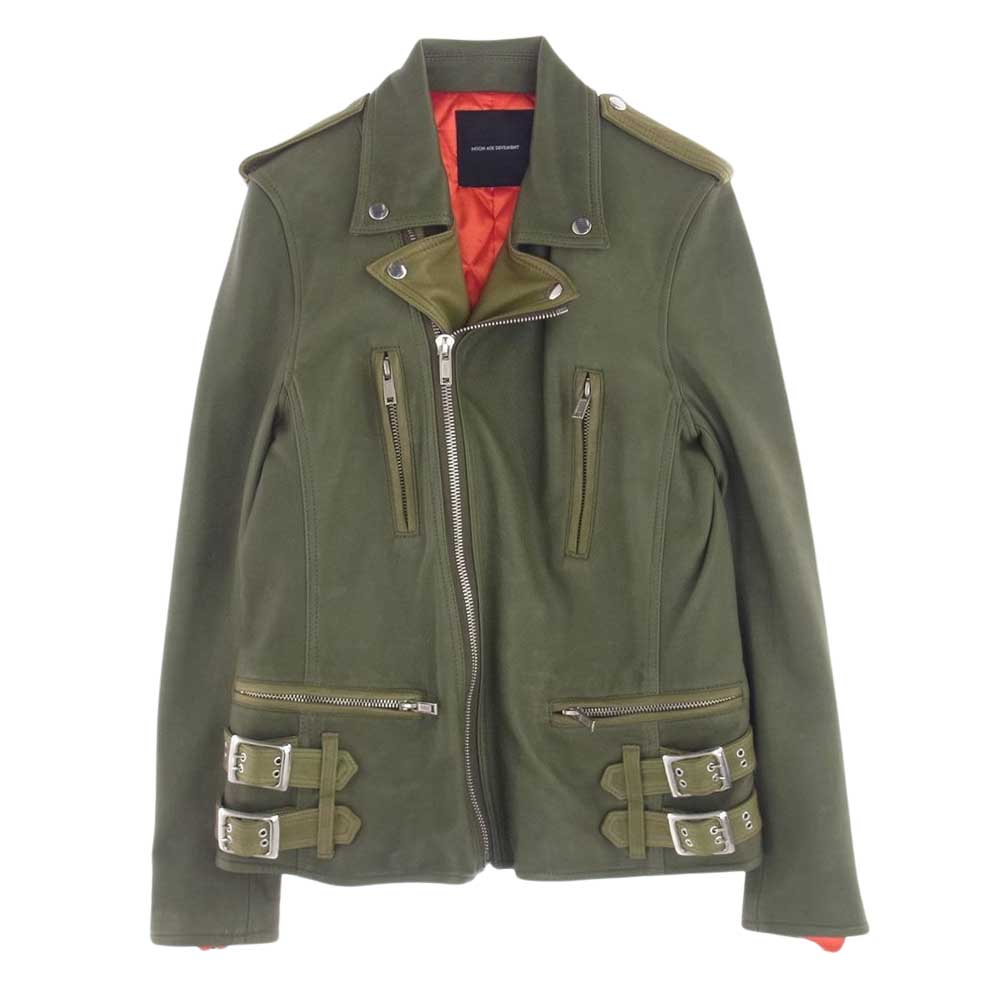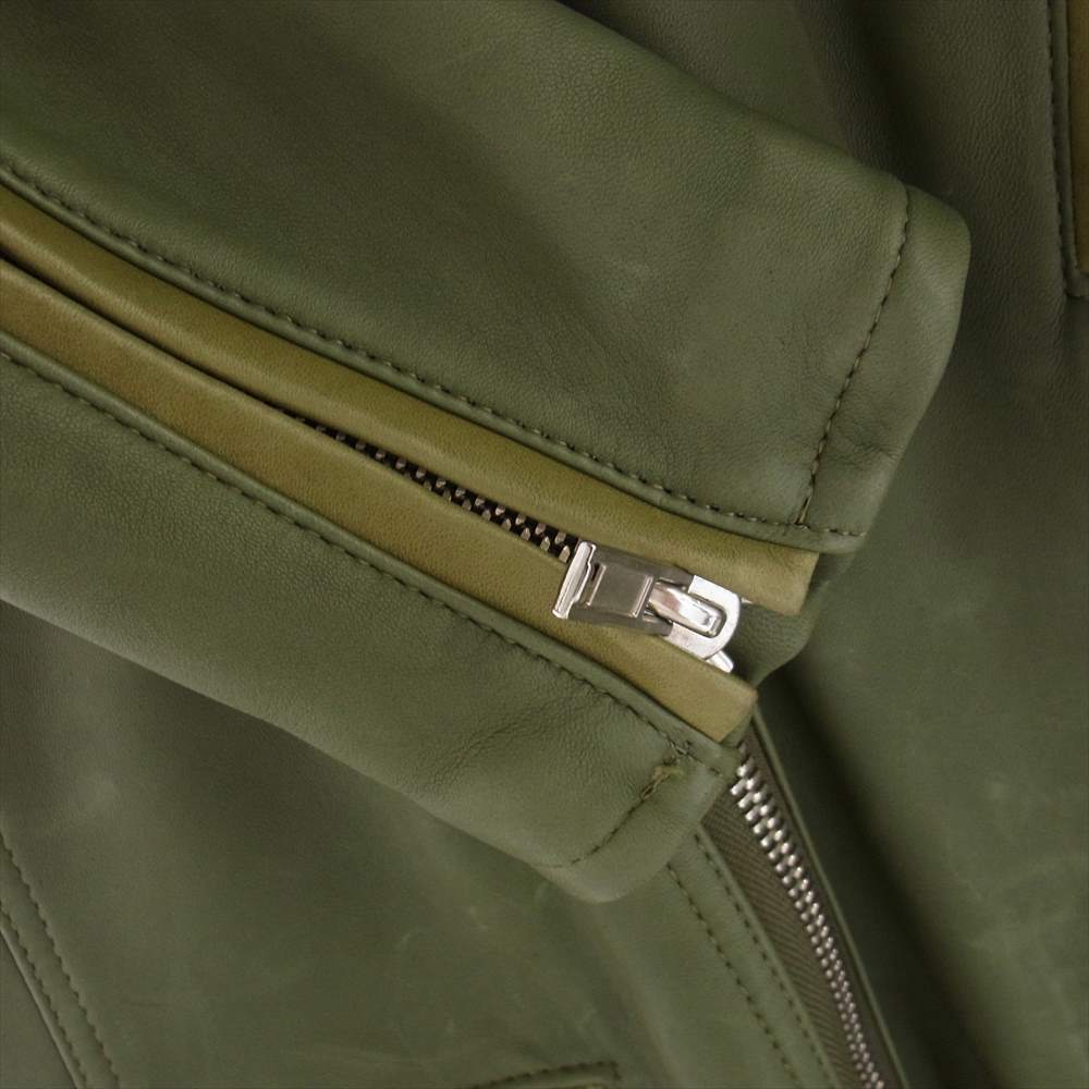 Moonage Devilment ムーンエイジデビルメント mac-0292 ラムレザー ダブル ライダース ジャケット カーキ系 48【中古】